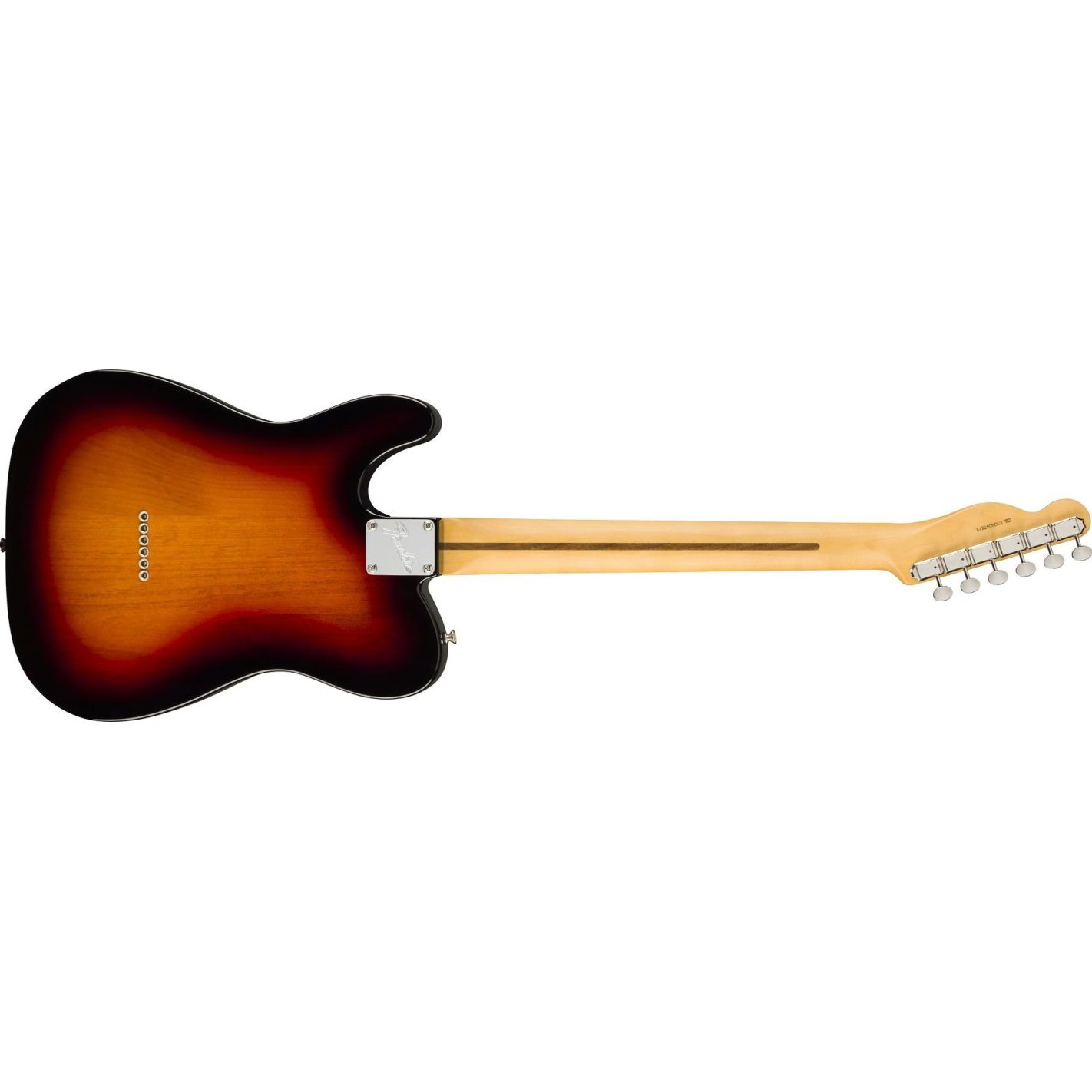 Guitarra eléctrica Fender American Professional Classic Telecaster Rosewood Fingerboard 3-Color Sunburst - Cuerpo de aliso con acabado Gloss Urethane y forma Telecaster. Mástil de arce Modern "C" con acabado satinado, diapasón de palorrosa de 9.5" (241 mm) con 22 trastes medium jumbo e incrustaciones "dot" blancas. Escala de 25.5" (648 mm), cejuela de hueso sintético de 42.8 mm. Pastillas Coastline ’63 Telecaster (puente / mástil), configuración SS. Controles Master Volume y Master Tone. Selector de 3 posiciones. Puente Tele vintage de 3 selletas de latón ranurado con cuerdas a través del cuerpo. Clavijeros Fender ClassicGear Staggered. Golpeador B/W/B de 3 capas. Hardware niquelado/cromado. Incluye funda Deluxe Gig Bag.