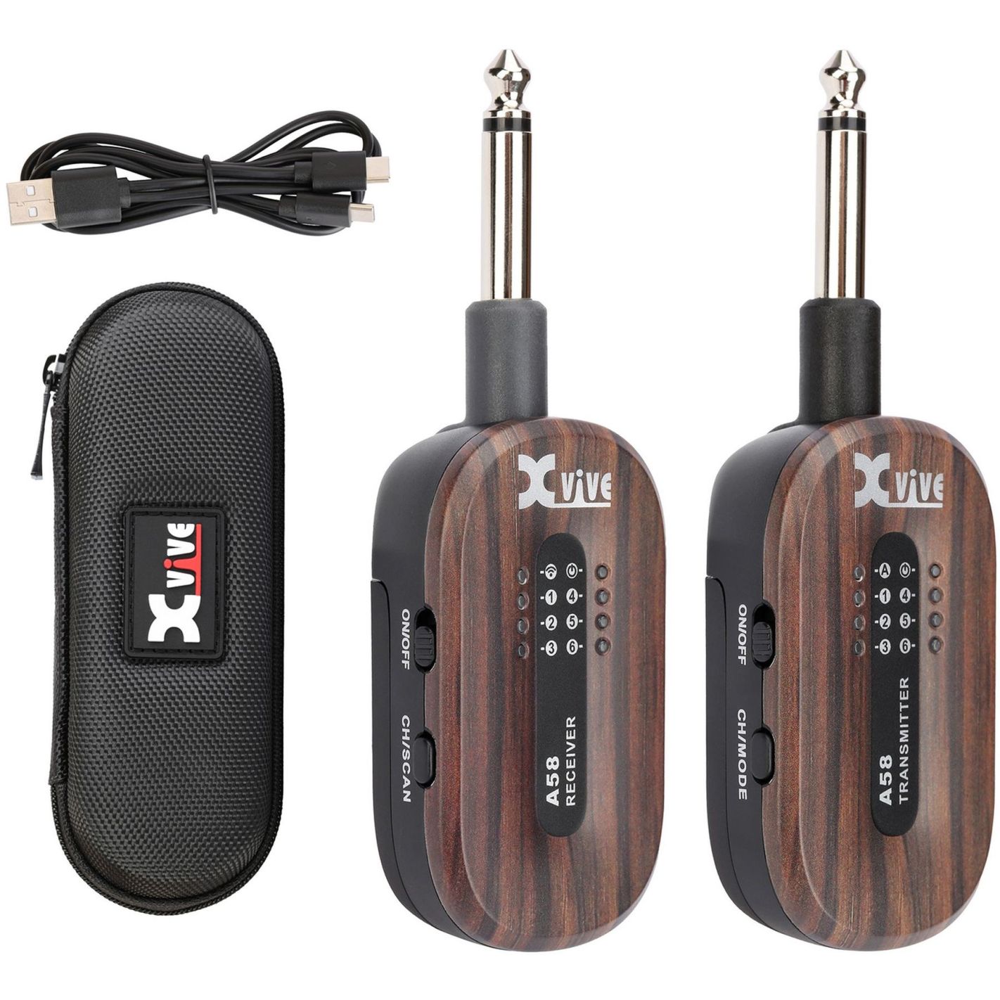 Xvive A58 Rosewood - Sistema Wireless: Guitarra Y Bajo Xvive A58 - Lleve su música al siguiente nivel con el nuevo sistema inalámbrico para guitarra A58!. El A58 es un sistema inalámbrico para guitarra que ofrece conexiones ultrafiables en la banda de frecuencia de 5,8 GHz. Esta banda de frecuencias está menos congestionada que la de 2,4 GHz, lo que minimiza el riesgo de interferencias de otras señales inalámbricas. Con 6 canales, un modo activo y un modo pasivo, el A58 es compatible con todo tipo de micrófonos y aparatos electrónicos. Además, incluye baterías recargables extraíbles que pueden ser sustituidas por un técnico cualificado, lo que garantiza muchos años de uso. Sistema inalámbrico True Diversity de 5,8 GHz. Audio de alta resolución de 24 bits/48 kHz. Hasta 5 horas de autonomía. 6 canales. Alcance de hasta 30 metros. Latencia imperceptible (menos de 5 ms). Compatible con micrófonos pasivos y activos. Selección automática del mejor canal disponible. Respuesta en frecuencia: 20 Hz - 20 KHz (-3 dB). Se suministra con un cable Usb-c doble para cargar simultáneamente el transmisor y el receptor. Se suministra con una funda de transporte. Baterías recargables sustituibles por un técnico cualificado. Para guitarra, bajo y cualquier instrumento con salida jack de 6,35 mm. Acabado: Palisandro. . .