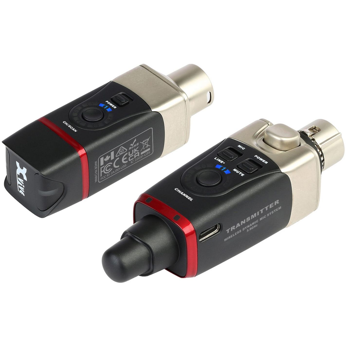 Xvive U35 - Sistema inalámbrico para micrófonos U35. Diseñado para que los micrófonos sean inalámbricos, el sistema U35 ofrece una calidad de sonido audiófila, un tamaño compacto y una transmisión estable y fiable. El U35 es adecuado para actuaciones en directo, sesiones de grabación, producciones teatrales, oratoria, aplicaciones en exteriores y mucho más. El U35 funciona incluso como unidad inalámbrica para altavoces activos o como extensión inalámbrica para cables Xlr. Es lo suficientemente pequeño y ligero como para caber en su bolsillo y se instala en segundos. Enchúfalo, enciéndelo, ajusta el canal. . Y voilà, ¡tu micrófono ya es inalámbrico !. Emisor y receptor recargables que funcionan en la banda de frecuencias de 5,8 GHz. Botón Mic/Line en el transmisor. Conversión A/d de 24 bits/48 kHz, transmisión digital sin comprimir. 6 canales. Alcance de hasta 30 m (sin obstáculos). Respuesta en frecuencia: de 20 Hz a 20 kHz. Latencia inferior a 5 ms. Rango dinámico 110 dB. Relación señal/ruido 110 dB. Alrededor de 5 horas de autonomía. Cable Usb incluido. Robustas carcasas de Abs. Peso: 93 g por unidad. Acabado: Negro.