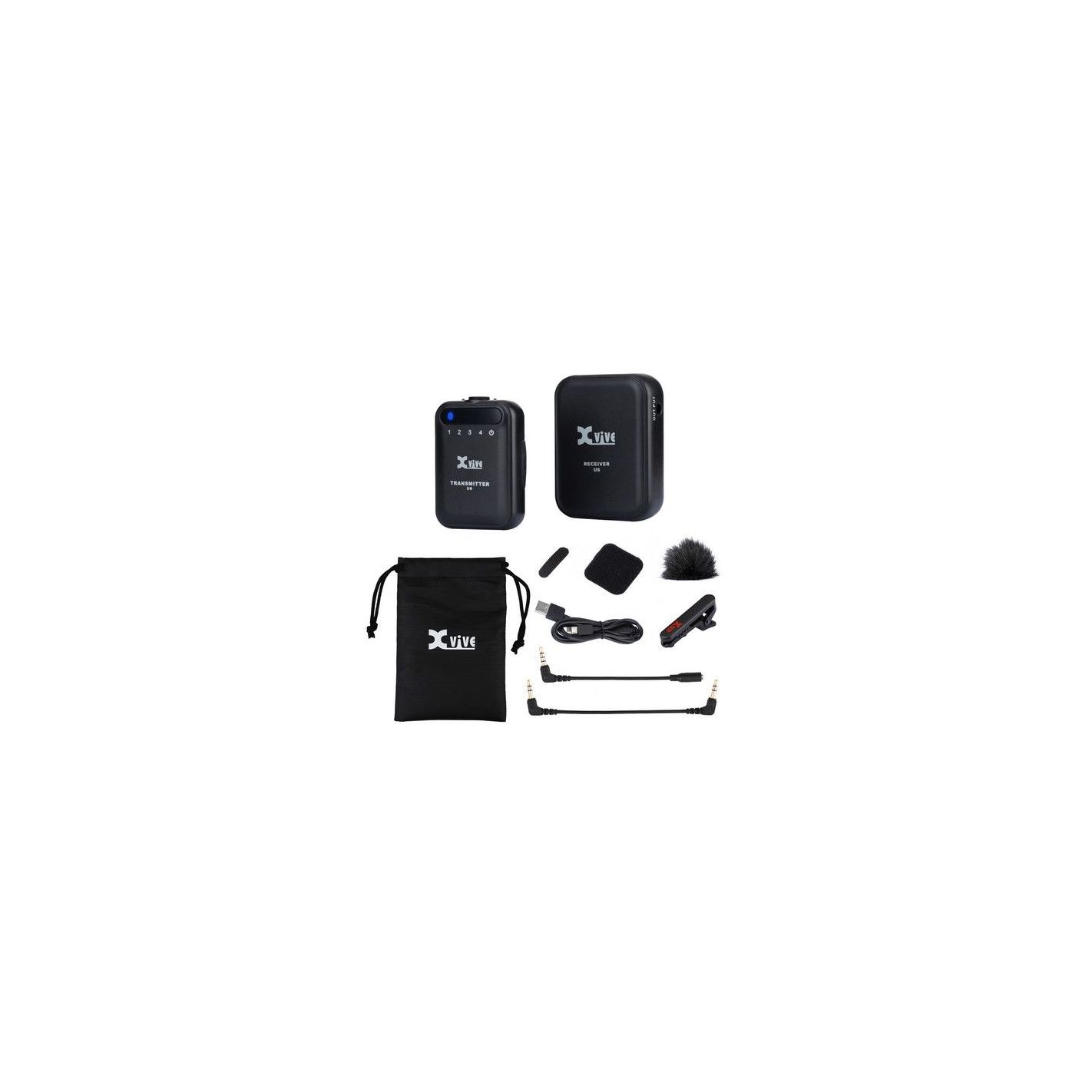 Sistema inalámbrico de micrófono lavalier, Xvive U6 - Sistema ultracompacto para cámaras, ideal para vídeo, vlogging y transmisión en directo. Transmisor con micrófono de condensador omnidireccional integrado, utilizable con clip o fijación Hook+Loop. Transmisión digital en 2,4 GHz con calidad broadcast, relación señal/ruido de 100 dB, latencia baja, autonomía de 4 horas, alcance de 27,5 m y 4 canales seleccionables para evitar interferencias.