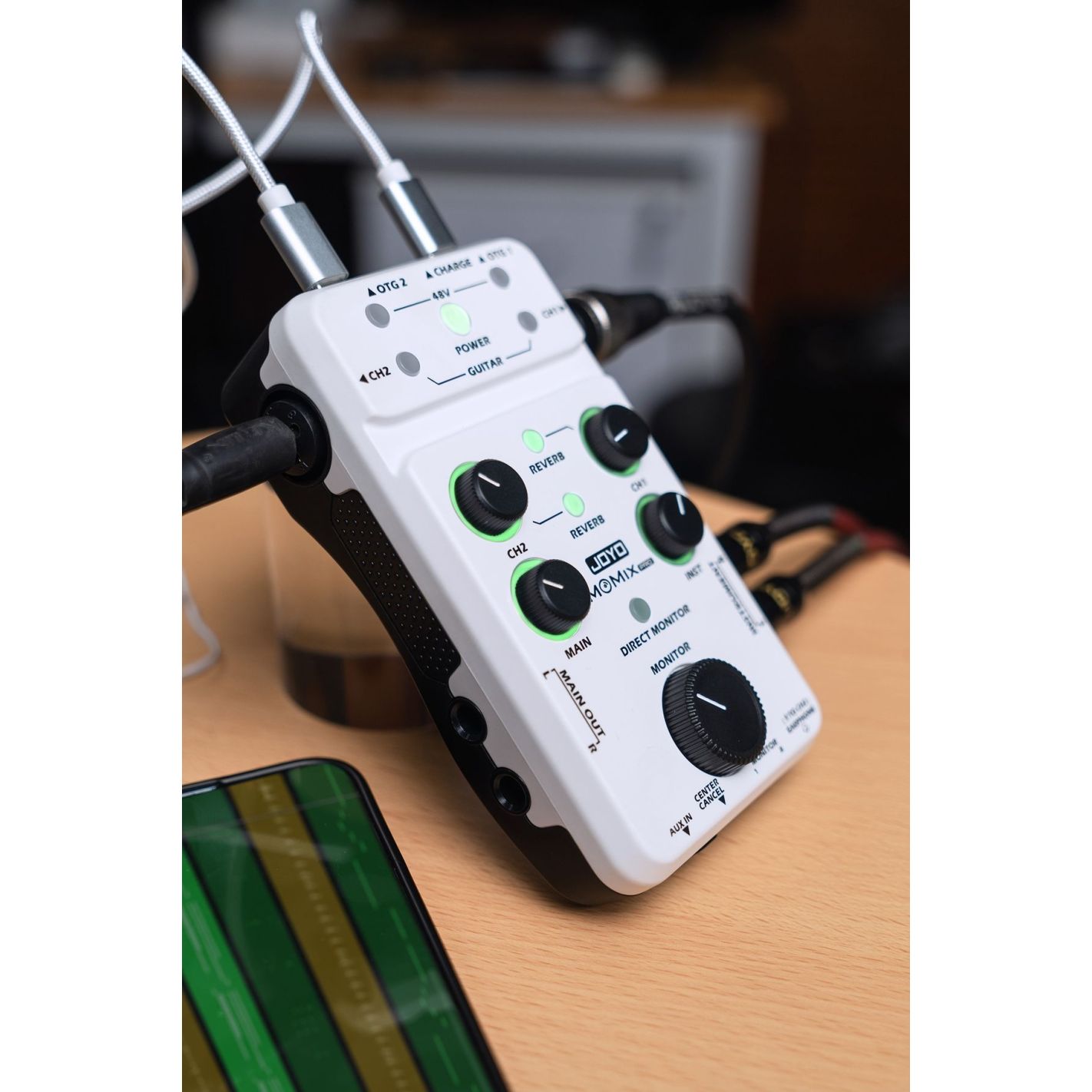MOMIX-PRO - INTERFACE // MEZCLADOR DE AUDIO JOYO PROFESIONAL PORTATIL - Puertos de entrada: 2x XLR/TRS, 2x Jack 6,3 mm TS, 1x Jack 3,5 mm TRS. Tasa de muestreo: 16bit/44.1 kHz, 48 kHz. Puertos de salida: 2x Jack 6,3 mm TRS, 3x Jack 3,5 mm TRS. USB a host: Sí. Alimentación phantom: Sí. - MOMIX-PRO - INTERFACE // MEZCLADOR DE AUDIO JOYO PROFESIONAL PORTATIL