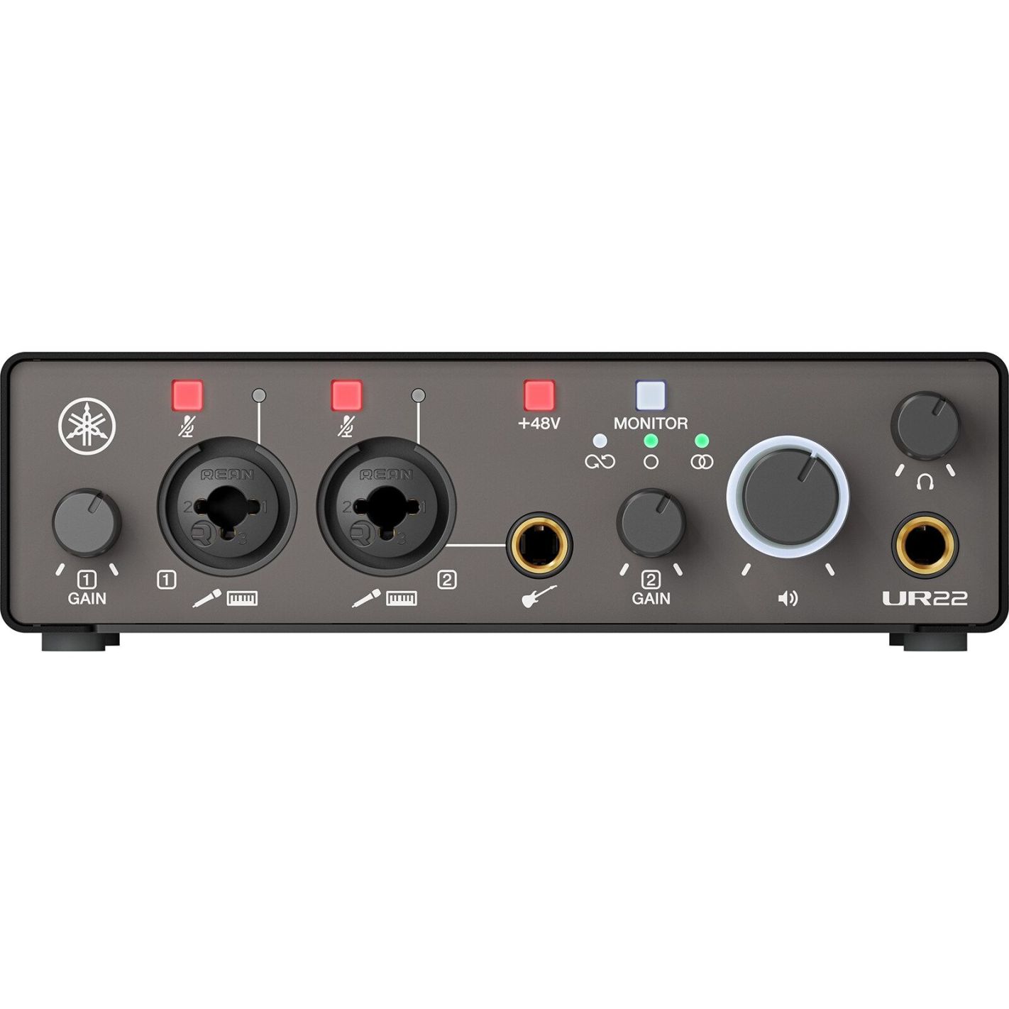 Interfaz de audio Yamaha UR22MK3, Black - Interfaz USB-C de 2 entradas y 2 salidas con resolución de 24 bits/192 kHz y rango dinámico de 106 dB. Incorpora dos preamplificadores de micrófono Yamaha con alimentación phantom +48 V, dos entradas combo Mic/Line con botón de silencio y una entrada Hi-Z para instrumentos. Ofrece monitorización directa por hardware sin latencia y función Loopback simplificada para retransmisión en directo. Dispone de dos salidas TRS balanceadas y una salida de auriculares con control de volumen independiente. Carcasa metálica compacta (158 × 47 × 102 mm) y ligera (450 g), disponible en acabados negro o blanco. Incluye Cubase AI, Cubasis LE, Steinberg Plus y cable USB.
