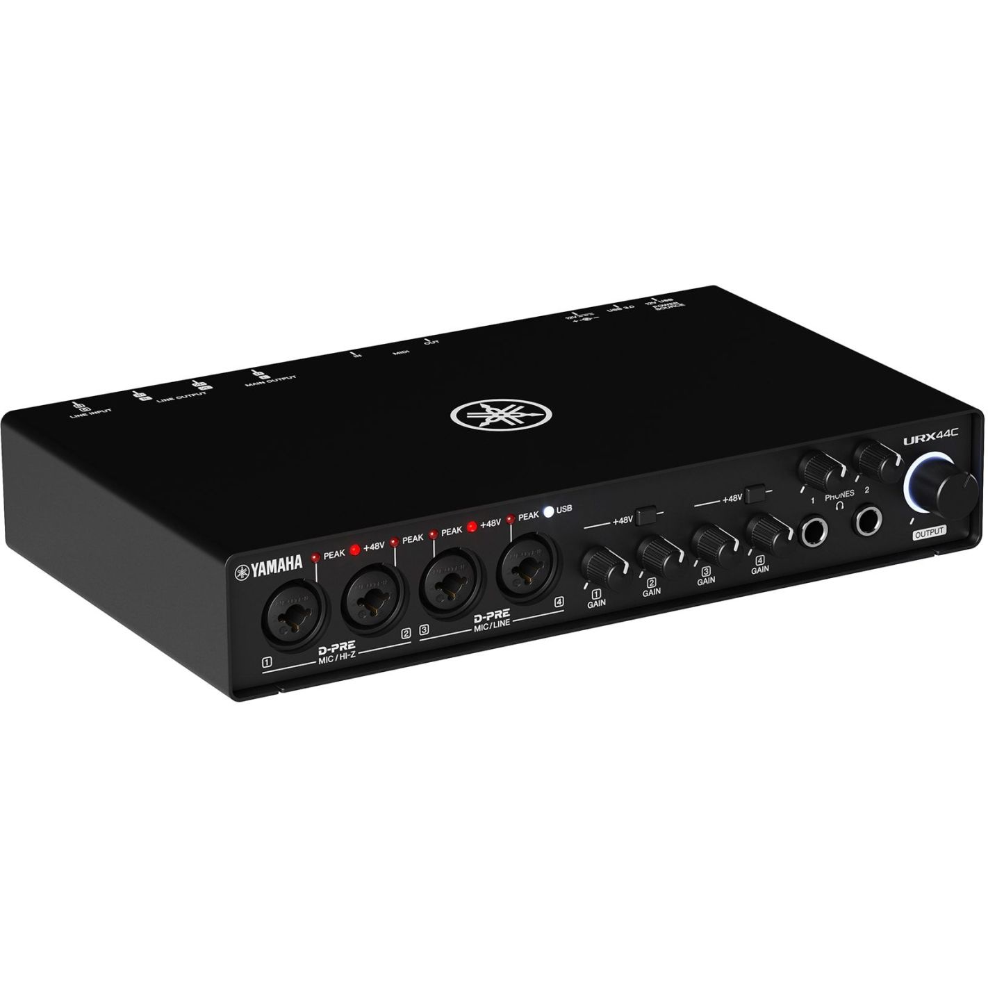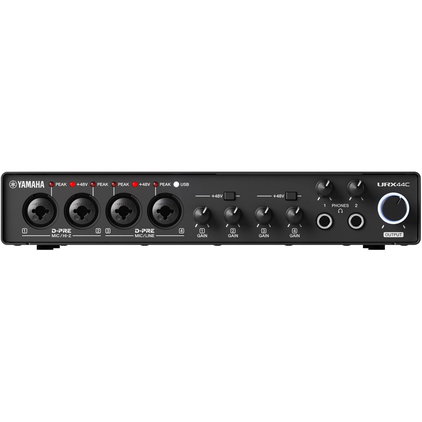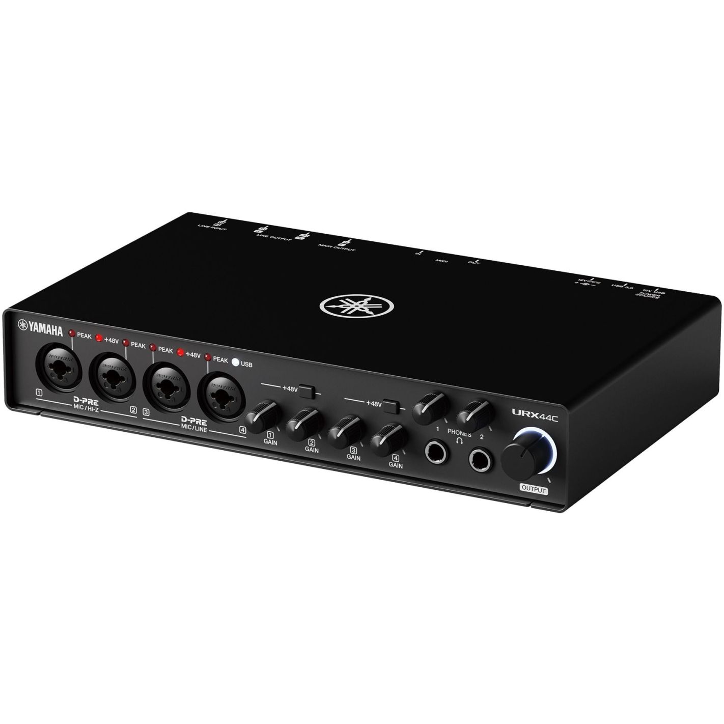 La Yamaha URX44C es una interfaz de audio/MIDI USB-C de 6 entradas y 4 salidas que ofrece un rendimiento profesional con resolución de 32 bits/192 kHz, perfecta para grabaciones multicanal, producciones musicales avanzadas y retransmisiones con múltiples participantes.