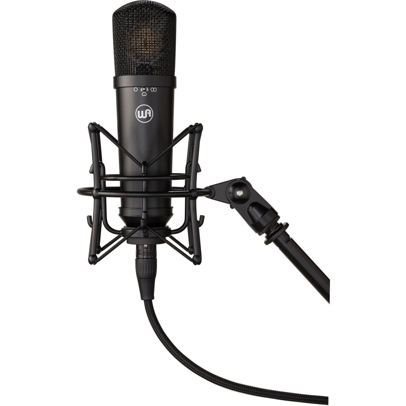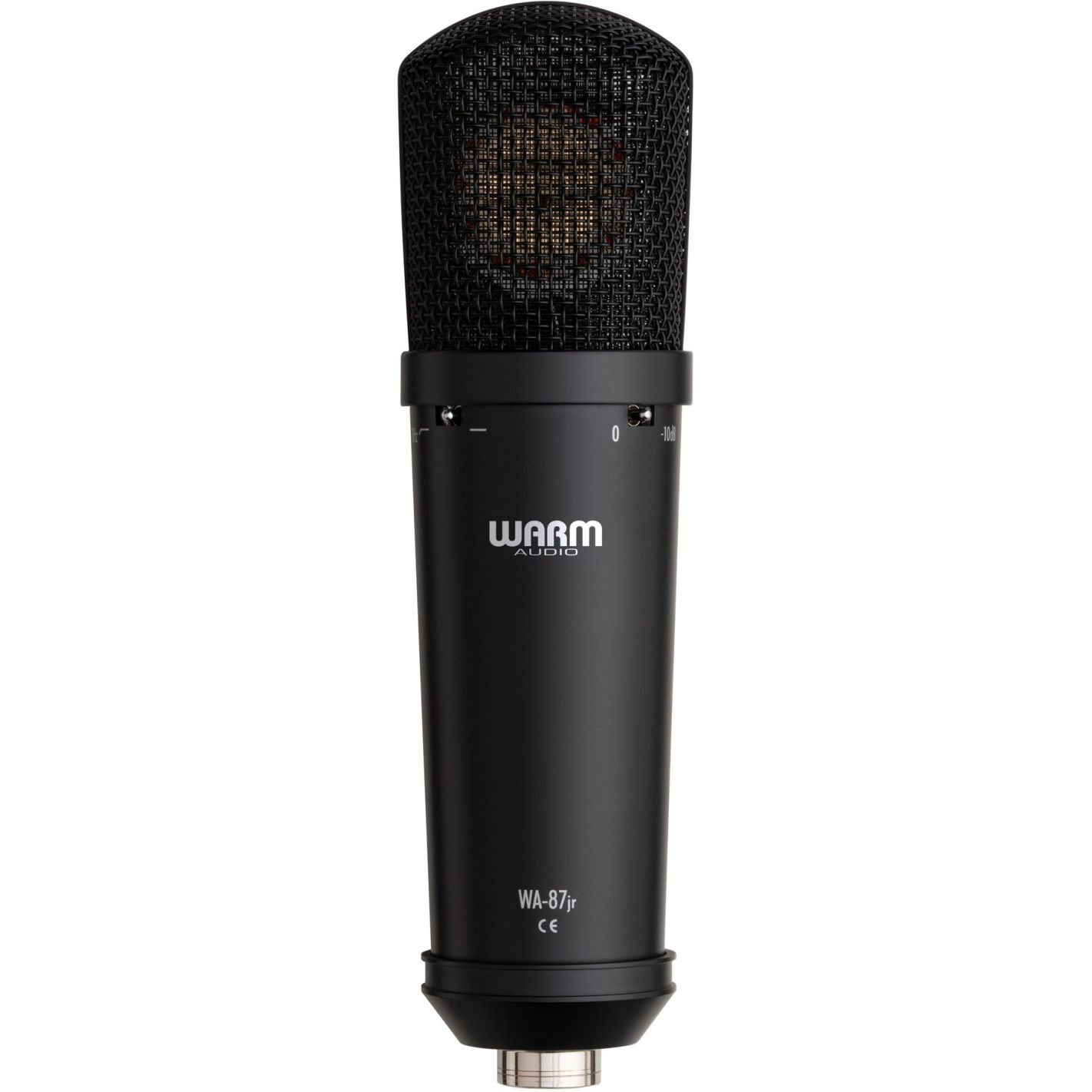 Micrófono de condensador Warm Audio WA-87jr negro - FET de gran diafragma sin transformador, cápsula idéntica a la del WA-87R2, patrones polares cardioide, figura en 8 y omnidireccional, pad de -10 dB, filtro paso-alto de 70 Hz, ruta de señal totalmente discreta. Ofrece agudos definidos, medios detallados y graves precisos con bajo nivel de ruido. Ideal para voces, instrumentos, podcasts, locuciones y creación de contenido. Incluye soporte amortiguador, clip rígido y estuche de cuero.