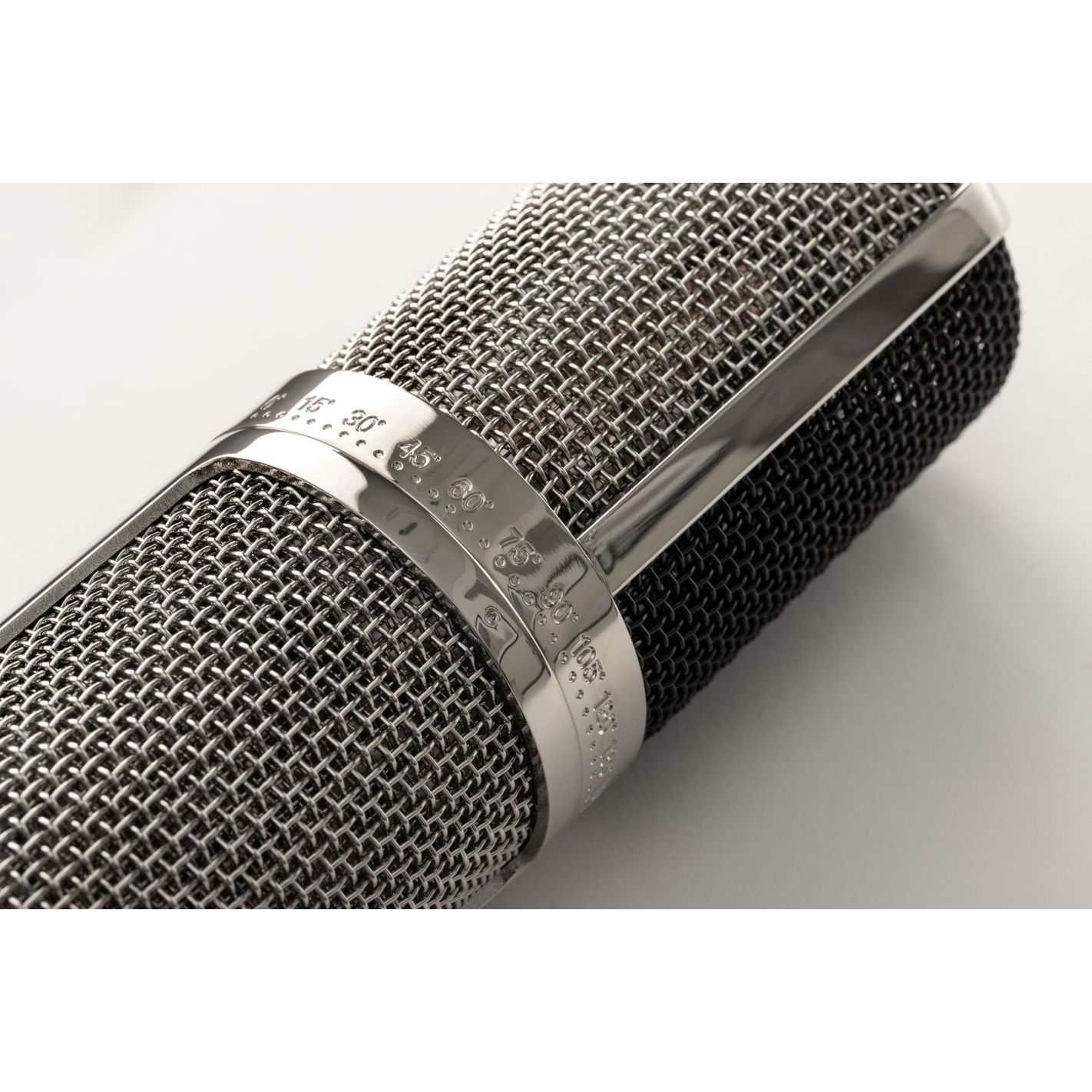 Micrófono de condensador estéreo de válvulas, Warm Audio WA-CX24 - Cápsulas estilo Vintage CK12 de latón, válvula 12AY7, 2 transformadores TAB-Funkenwerk USA. 9 patrones polares más 6 combinaciones adicionales, cápsula superior con rotación de 180° para configuraciones XY, Blumlein o Mid-side. Nivel máximo de presión sonora 149 dB, respuesta 30 Hz-20 kHz, impedancia 200 Ohms, relación señal/ruido 73 dB, ruido propio 22 dBA. Dimensiones 35,6 x 5 cm, peso 1,4 kg. Incluye estuche de tweed con caja de madera, fuente de alimentación, araña y cable Gotham Swiss de 9 pines.
