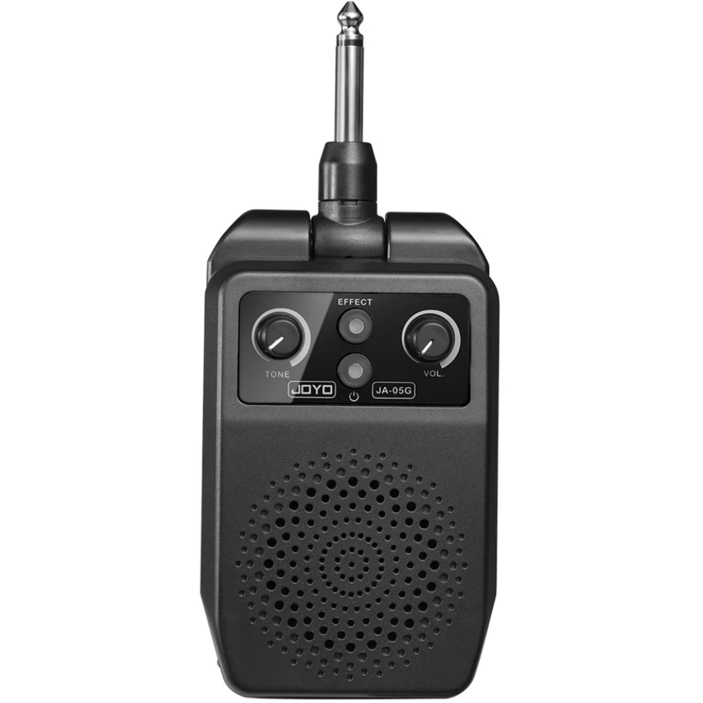 JA-05G - MINI AMPLIFICADOR DE 5w PARA GUITARRA ELECTRICA CON EFECTOS JOYO - JA-05G es un amplificador de guitarra eléctrica plug and play. Se adapta a guitarras eléctricas con Jack de 6,35 mm, con 4 efectos incorporados: CLEAN, OVERDRIVE, DISTORTION y REVERB. Puedes disfrutar de las pistas de acompañamiento a través de Bluetooth. Además, tiene una perilla de control de tono, puede ajustarla para aumentar o reducir los AGUDOS en consecuencia. Es liviano, portátil y fácil de usar; literalmente puedes usarlo en cualquier momento y en cualquier lugar.