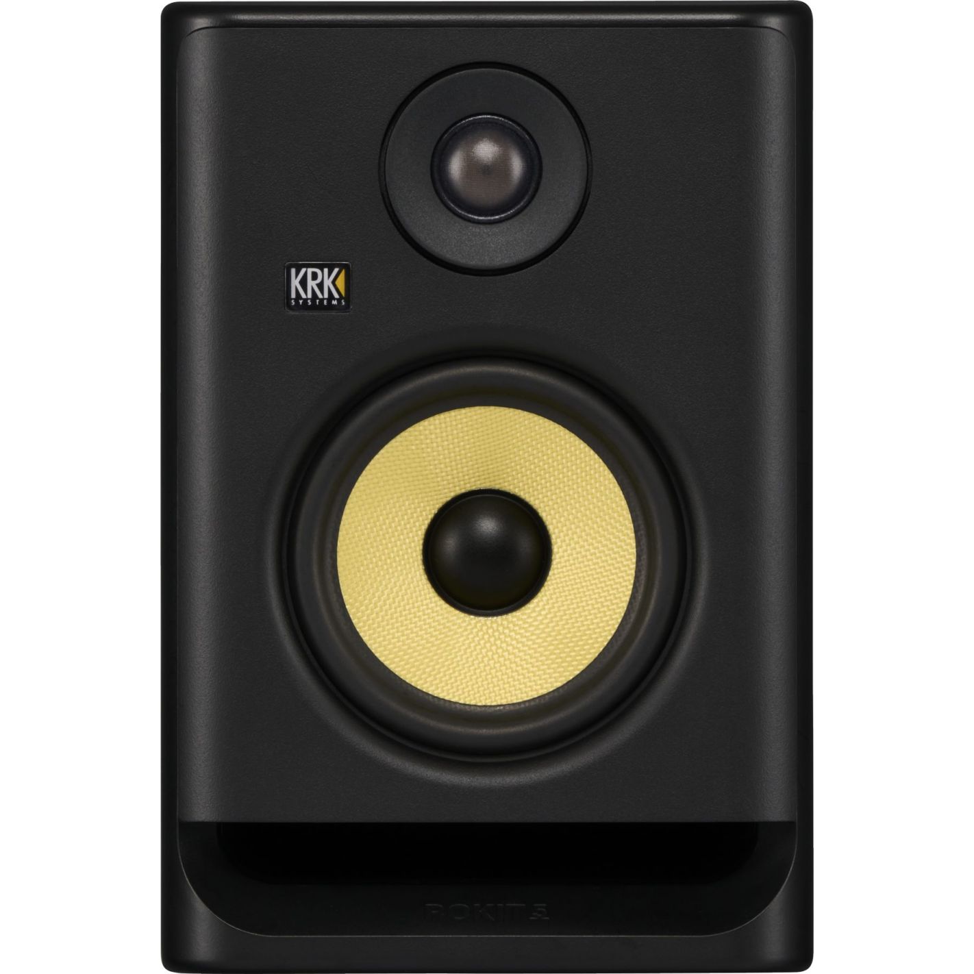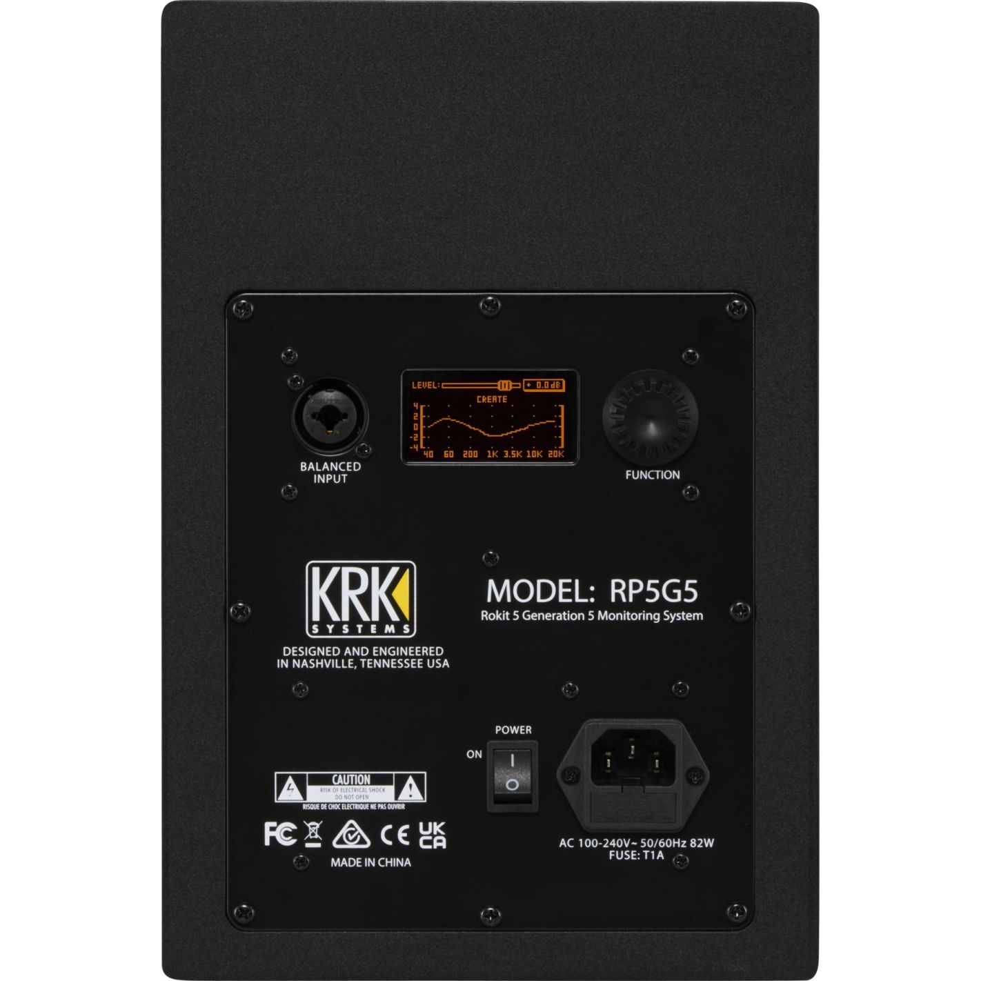 B-Stock (Embalaje deteriorado) - Monitor Nearfiel para estudio de KRK Rokit RP5 G5 - Biamplificado 35W + 20W. Woofer 5" + Tweeter 1". 3 modos de sonorización con 25 combinaciones de ecualizador y afinación: 1 MIX - Respuesta plana, precisa, la mejor para trabajos de precisión. 2 FOCUS - Enfoque en medios para ajustar los matices vocales e instrumentales. 3 CREATE - Perfecta para inspirarse mientras escribes, creas ritmos o escuchas de forma pasiva. Nuevo diseño del tweeter para mejorar el rendimiento en frecuencia y fase. Actualizada la pantalla Amber LCD y el menú de opciones de calibración. Viene de serie con la rejilla protectora instalada. Incluye almohadillas aislantes de cuña de espuma. DSP integrado avanzado con pantalla LCD. Woofer de fibra de aramida (Kevlar®) tejida. Nuevo tweeter de cúpula de seda acústica. Imagen estéreo aumentada gracias a la difracción controlada de los bordes del bafle optimizado. Puntos de anclaje integrados para utilizar con los soportes de montaje KRK, ideales para instalaciones de estudio inmersivas.
