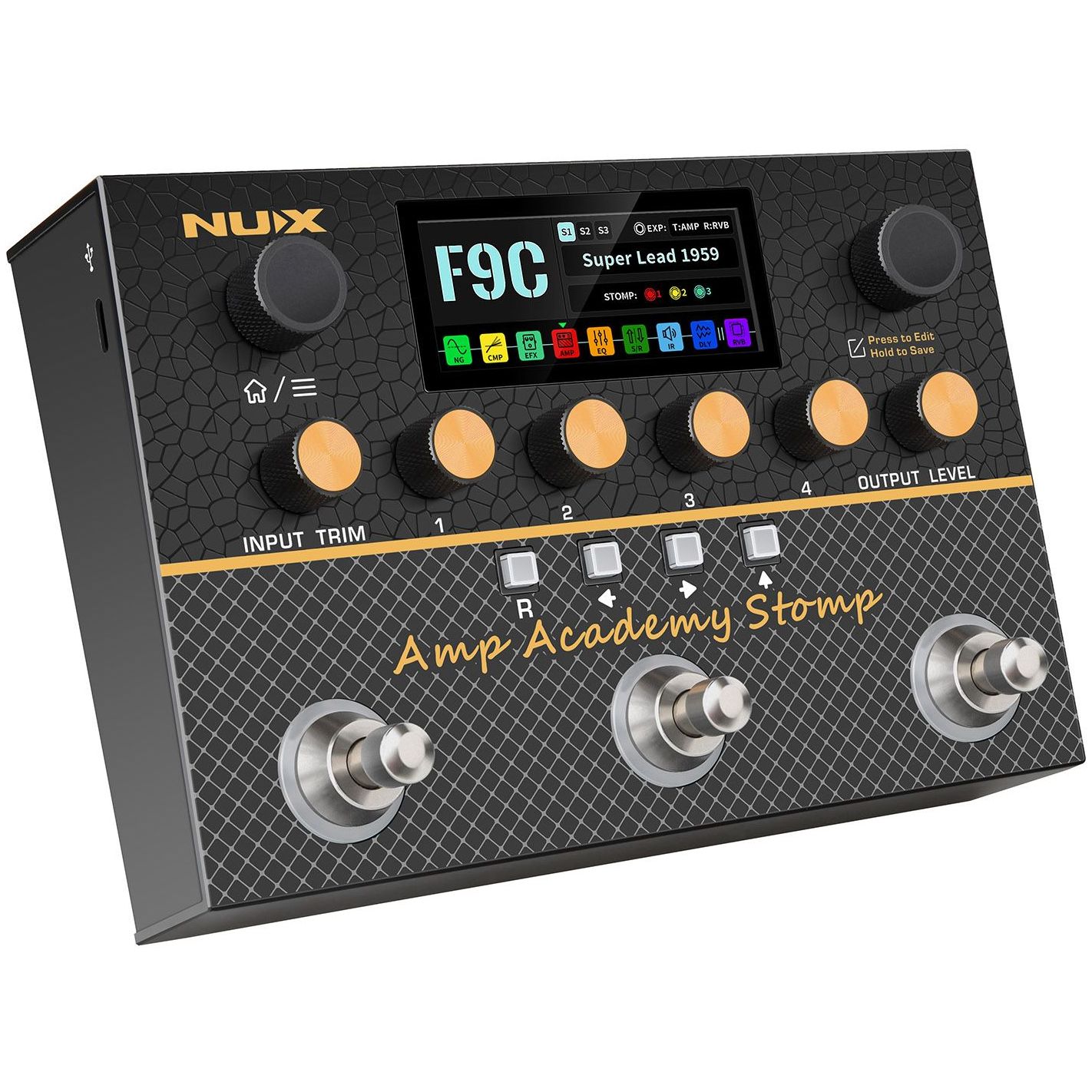 El NUX Amp Academy Stomp es un modelador compacto de amplificadores y efectos que combina potencia digital y control avanzado en un formato portátil, ideal para escenarios, estudio y grabación directa.