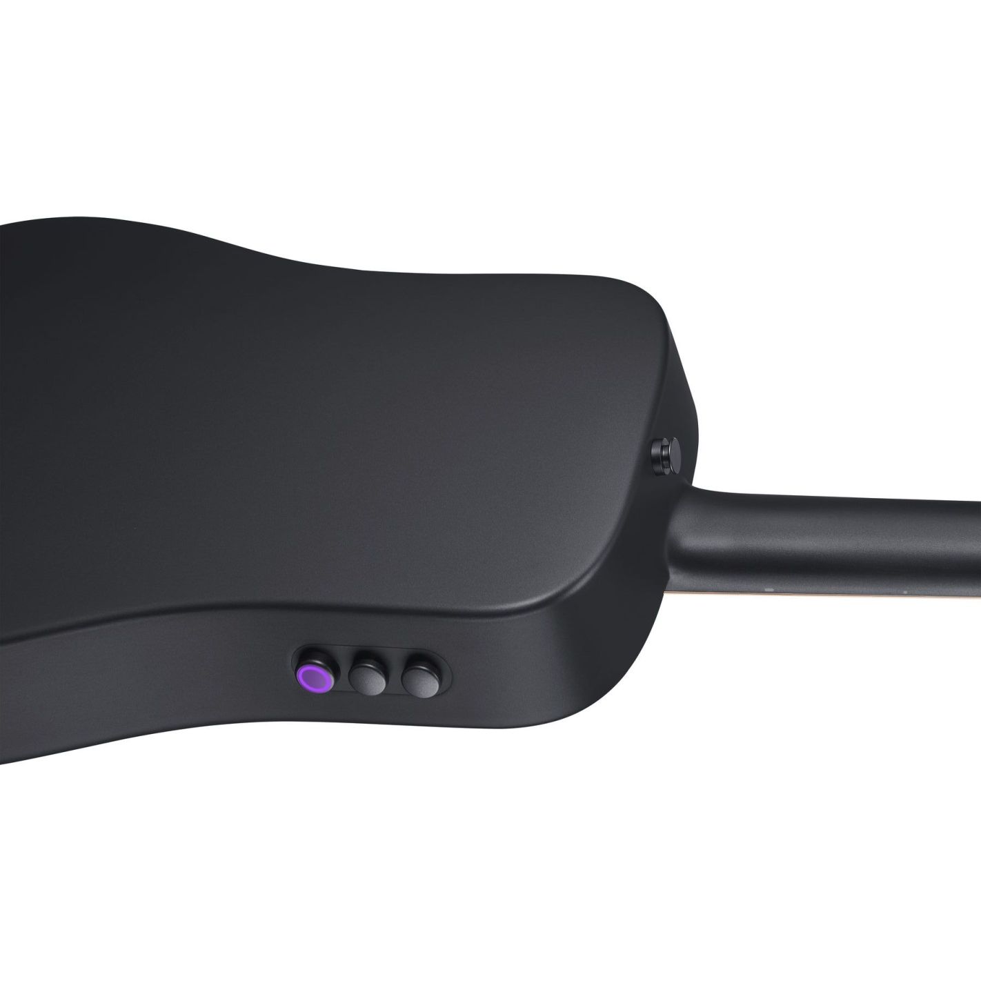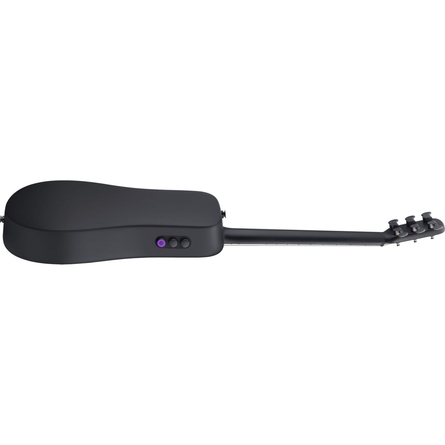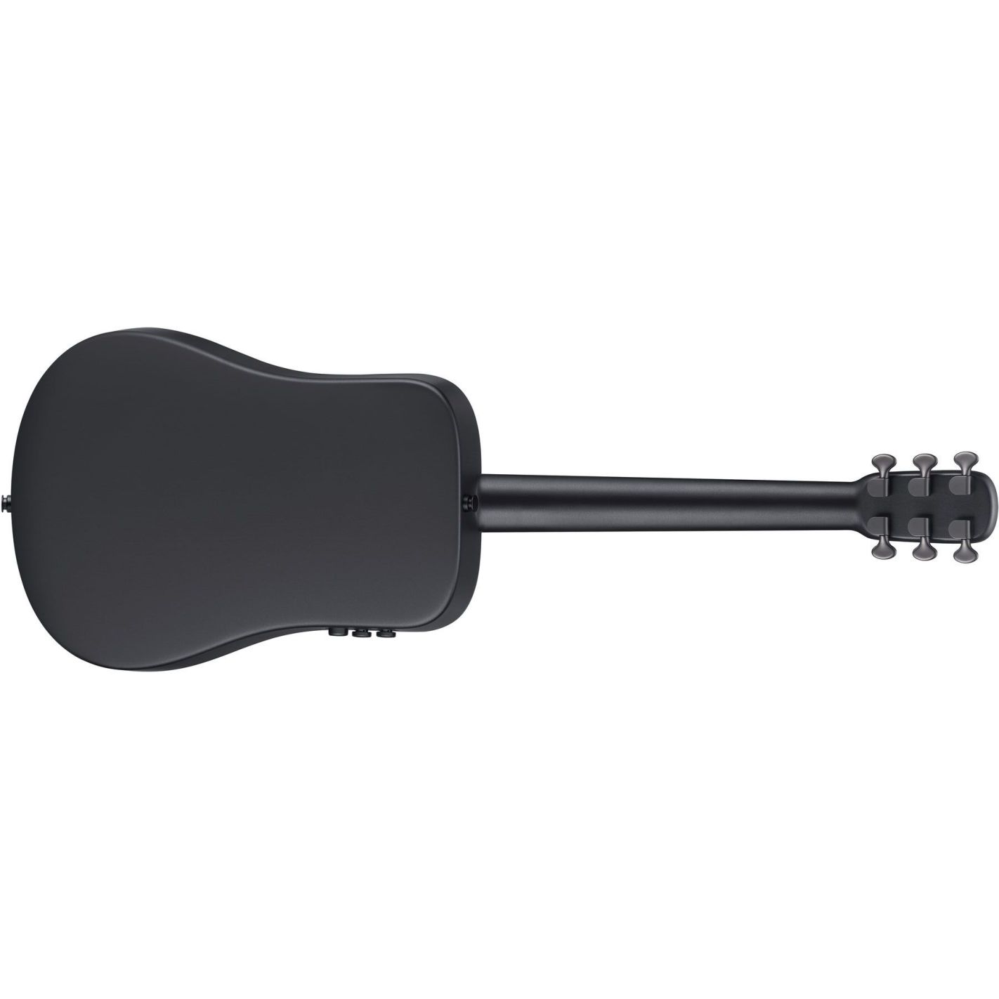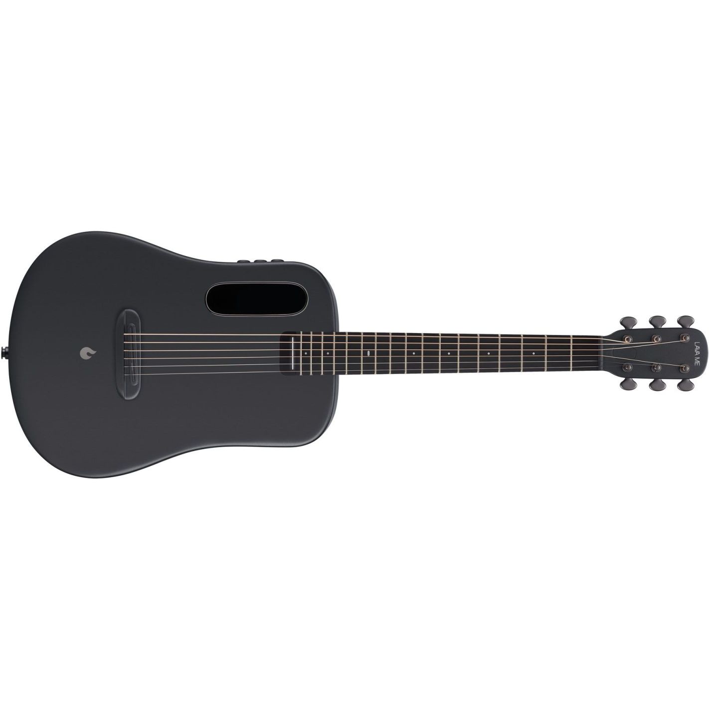 Guitarra acústica Lava Music Me Air Carbon Black - Construcción de una sola pieza en compuesto de fibra de carbono AirSonic 2 con refuerzo trasero de protección por nervaduras. Tapa en Super AirSonic Carbon Fiber Composite con varetaje tipo panal Bionic, acabado mate. Aros y fondo en AirSonic 2 Carbon Fiber Composite, diapasón y puente en HPL con radio de 15.75", 17 trastes de aleación cobre-níquel y cejuela/silleta de PPS. Mástil Flyneck con transición de “C” (1-12) a “U” (12-), ancho de 1.7-2.11", acabado mate. Pastilla magnética con sistema FreeBoost Magnetic integrado, batería de 3350 mAh