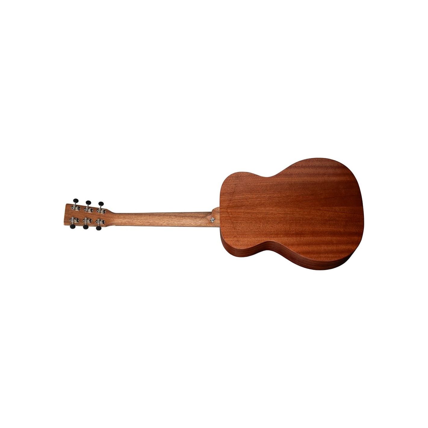 Guitarra acústica electroacústica Martin 000 Junior A/E Sapele, Martinguit 000JRE-SAPELE - Cuerpo tipo 000 Junior con tapa, aros y fondo de sapeli macizo, varetaje en X de abeto escalopeado. Escala de 24,9" con mástil Performing Artist y diapasón biselado para mayor confort. Espaciado optimizado de cuerdas. Electrónica Martin E1 con afinador y controles de volumen, tono y fase. Incrustaciones imitación de abalón y acabado satinado de estilo vintage. Incluye estuche blando resistente.
