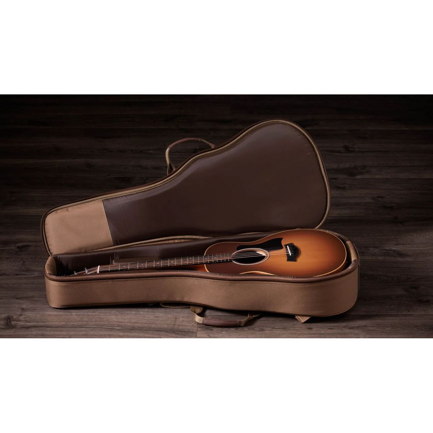 Guitarra electroacústica Taylor GS Mini-e Special Edition Honeyburst - Tapa sólida de Sitka spruce torrefactado, fondo y aros de sapele, mástil de neo-tropical mahogany, diapasón de ébano Crelicam de África Occidental, cuerpo GS Mini, varetaje X Bracing, 6 cuerdas, orientación right handed, electrónica ES-B con afinador digital integrado, clavijas die-cast cromadas, incrustaciones de puntos de 4 mm, incluye funda Tan Structured Gig Bag.