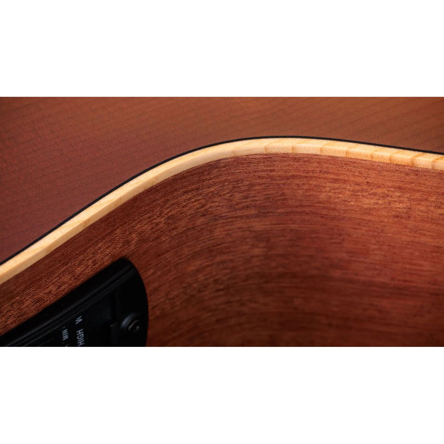 El mástil está fabricado en caoba neo-tropical, con un perfil delgado que facilita una ejecución cómoda y relajada. El diapasón de ébano de Crelicam de África Occidental añade durabilidad y una respuesta precisa al tacto. El cuerpo compacto de la guitarra, con fondo y aros de sapele, proporciona un excelente equilibrio tonal y hace que esta guitarra sea ideal tanto para principiantes como para músicos en movimiento.