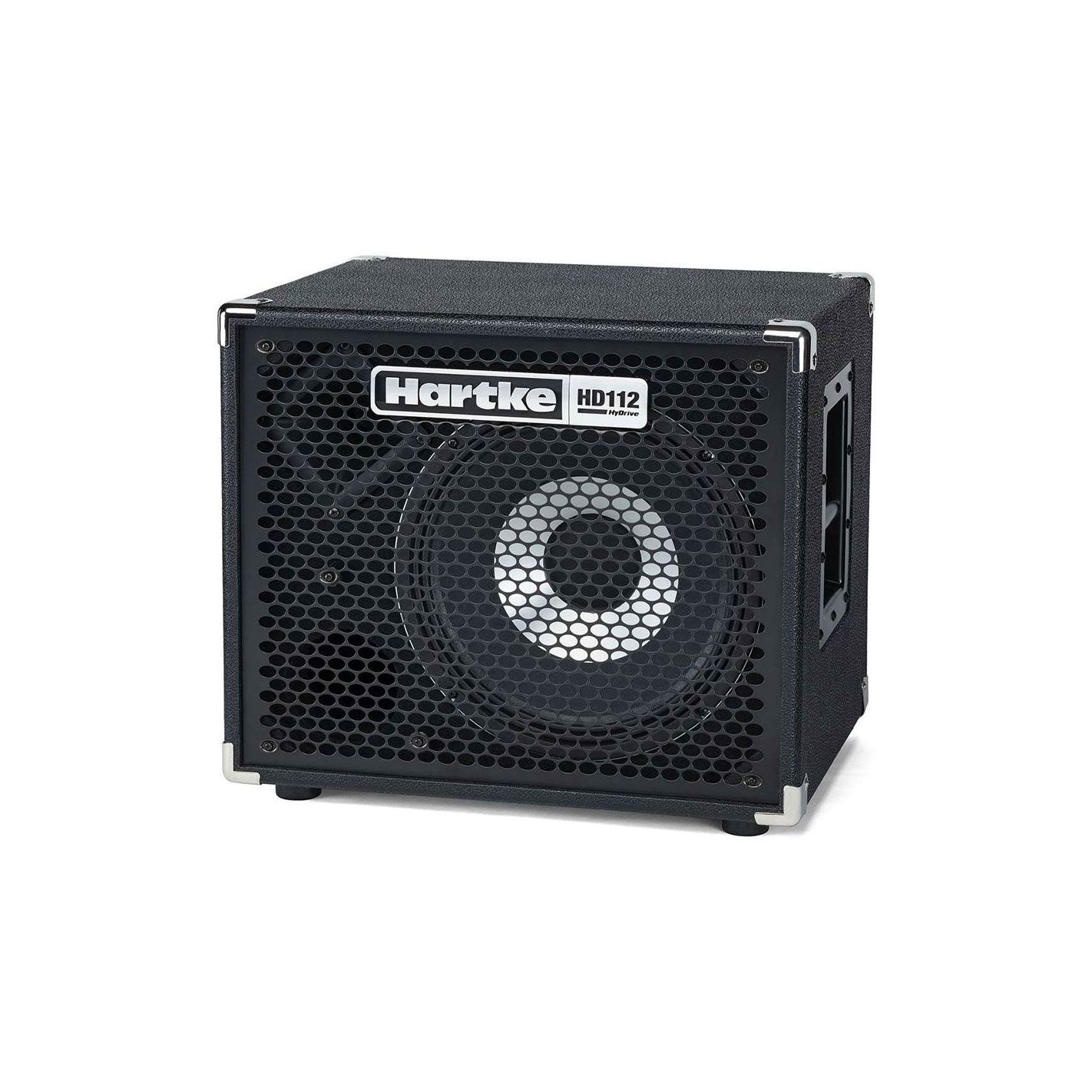 Pantalla para bajo Hartke HyDrive HD112 - Potencia de 300 W, configuración 1x12" con altavoz HyDrive de tecnología híbrida con imán de neodimio y cono de papel y aluminio, tweeter de titanio de 1" con control de nivel, conexiones jack 1/4" y Speakon, recinto ultraligero de contrachapado con recubrimiento de vinilo, rejilla, asas y esquinas metálicas.