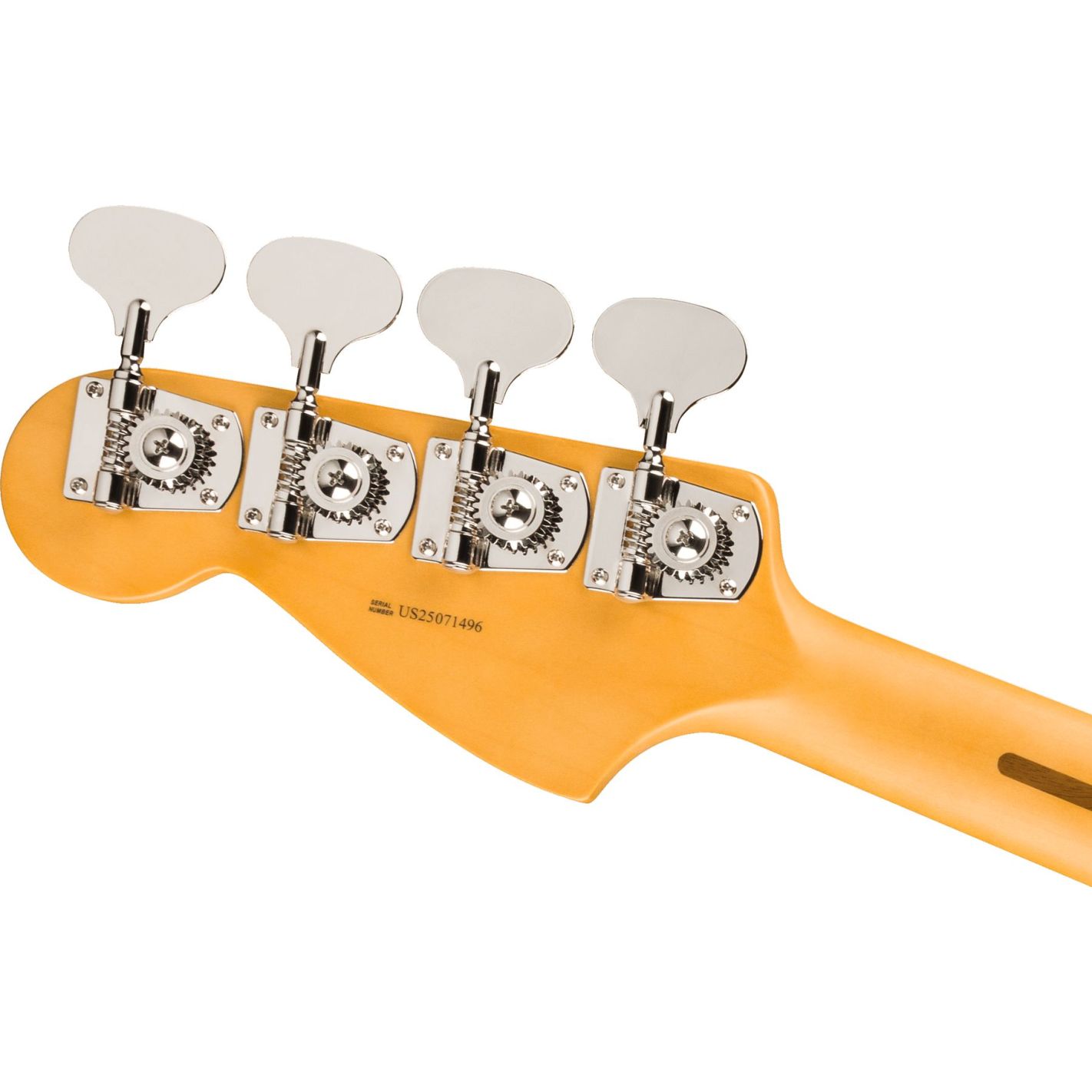Bajo eléctrico Fender American Professional Classic Mustang Bass, Rosewood Fingerboard, 3-Color Sunburst - Cuerpo de aliso con acabado gloss urethane en forma Mustang Bass. Mástil de arce en perfil “Modern C” con acabado satinado. 19 trastes medium jumbo, escala corta de 30" (762 mm), radio de 9.5" (241 mm), diapasón de palosanto con incrustaciones tipo “dot” en blanco, cejuela de hueso sintético de 41.3 mm. Pastilla Coastline Mustang Bass split-coil, ajuste SS. Controles Volume 1 (medio), Volume 2 (puente), circuito Master Greasebucket Tone. Puente Mustang Bass de 4 selletas con cuerdas a través del cuerpo. Clavijeros Fender estilo vintage “Lollipop”, golpeador de 3 capas B/W/B, cubiertas de pastillas en blanco envejecido, botones negros, herrajes níquel/cromo. Incluye funda Deluxe Gig Bag.