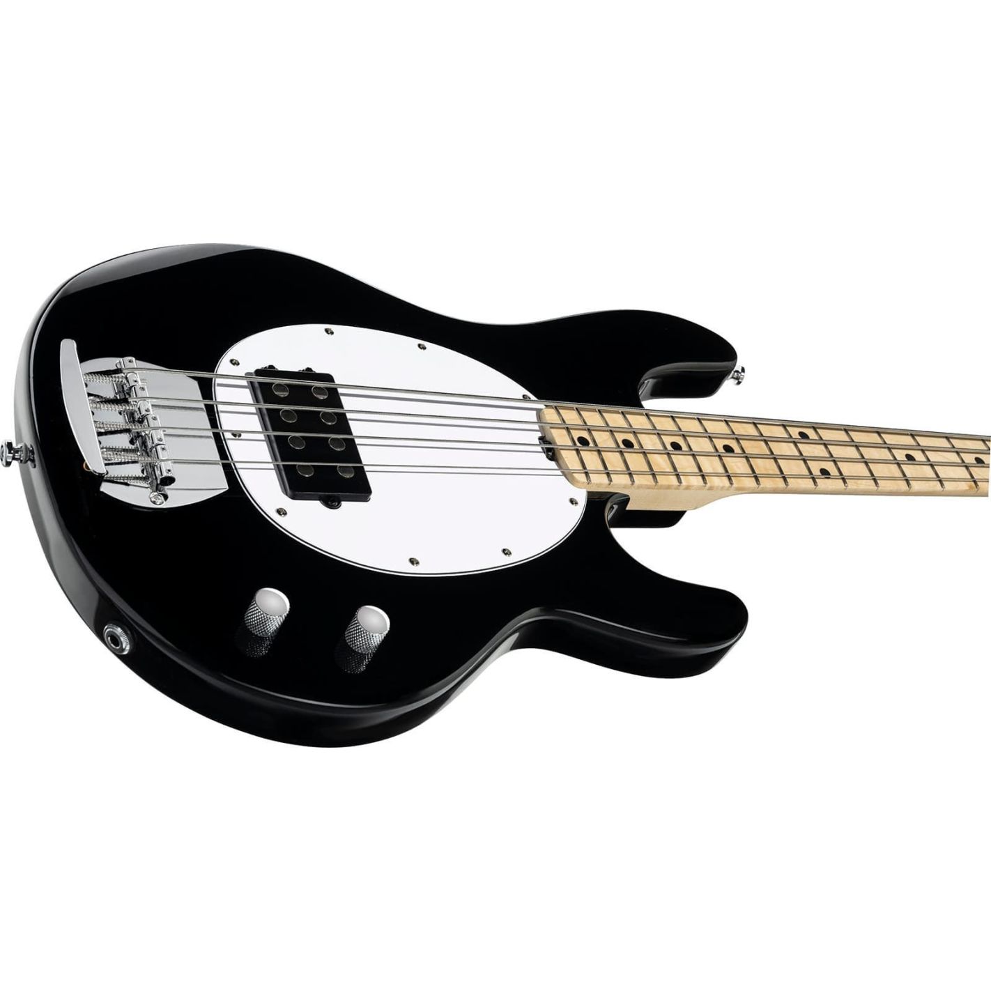 Bajo eléctrico, Sterling, ST-RAY2-BK-M1 - Pastilla cerámica tipo humbucker con electrónica pasiva, mástil de arce con acabado satinado, cuerpo contorneado, cejuela de 38 mm para mayor comodidad, diseñado para nuevos músicos en la serie Intro StingRay, acabado Black