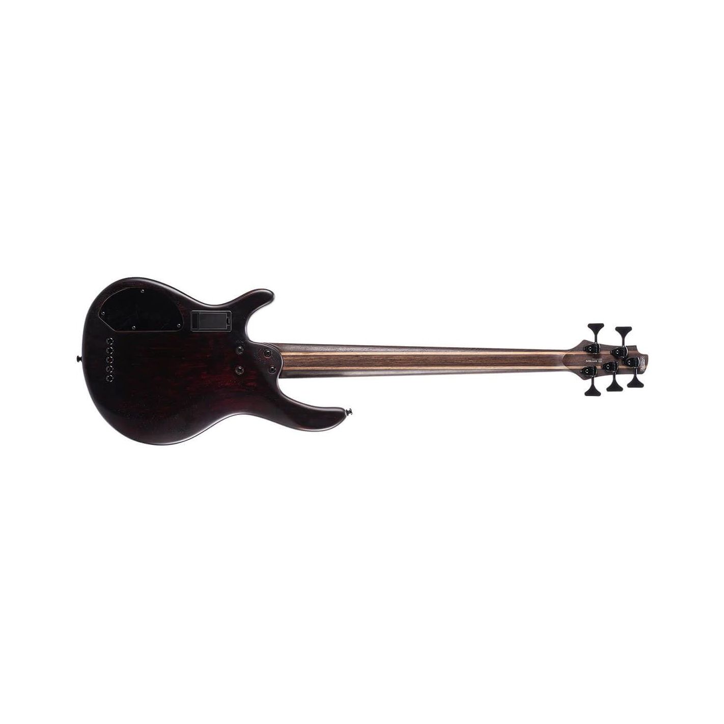 Bajo eléctrico Cort B5 Element OPN - Construcción bolt-on, cuerpo de caoba con tapa de fresno 9T, escala de 34" (864 mm). Mástil de 5 piezas arce/panga panga en perfil “C” con diapasón de arce tostado, radio 15.75", 24 trastes medium-jumbo e incrustaciones de abalone. Cejuela PPS negra de 45 mm y alma de doble acción. Clavijeros Hipshot Ultralite y puente MetalCraft M5 con espaciado de 18 mm. Pastillas Bartolini MK-1 con previo Bartolini MK-1, controles de volumen, balance, ecualizador de 3 bandas y mini conmutador. Acabado mate poro abierto, herrajes en negro, cuerdas D’Addario EXL170-5 (.045–.130).