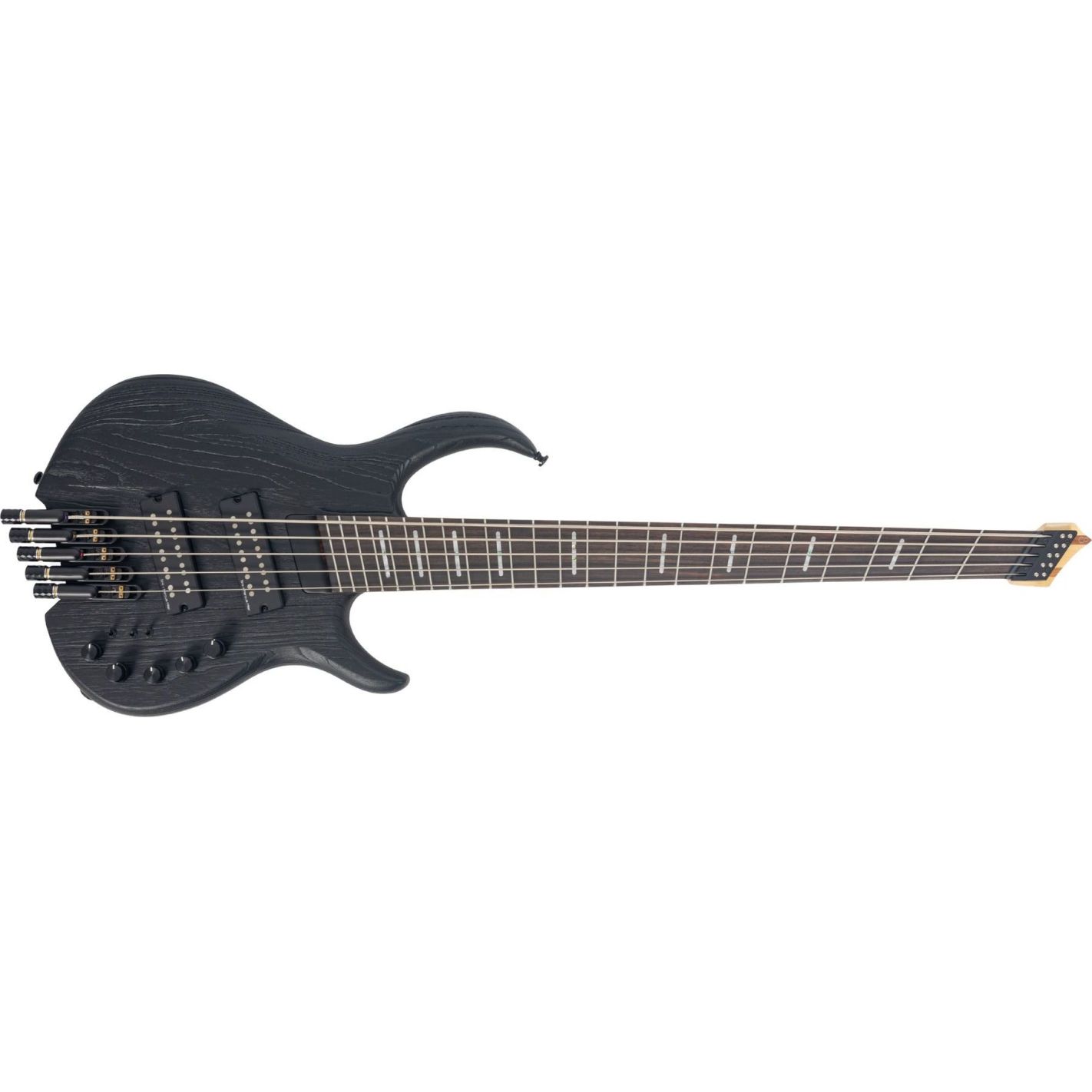 Bajo eléctrico Sire Marcus Miller M6 Headless, Black - Cuerpo de caoba con forma Sire M-Headless y acabado satinado. Mástil de 5 piezas arce/caoba con perfil en “C” y unión atornillada de 5 pernos. Escala multiescala de 33" a 35", diapasón Rosewood Edgeless (bordes redondeados) con radio de 16", incrustaciones de bloques redondeados en pearloid blanco y abulón, 24 trastes medium jumbo de acero inoxidable, cejuela Graphtech Tusq XL de 45,7 mm. Pastillas Marcus Pure-H Revolution Set, previo activo Marcus Heritage-3 con control de frecuencia media. Controles Volume/Tone, Blender, Treble,