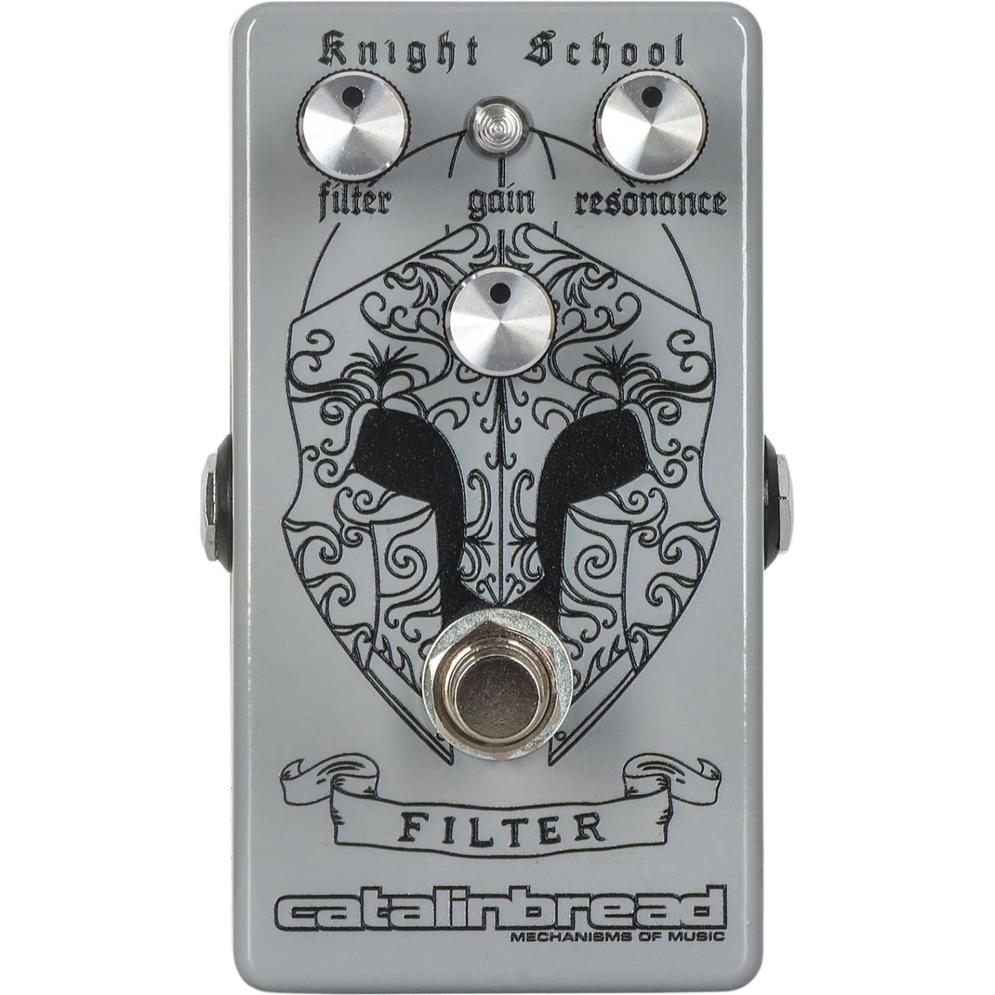 Pedal de filtro Catalinbread Knight School Filter - DIY Kit - Kit de montaje con filtro pasa bajos de diseño activo tipo “state-variable”, ideal para lograr efectos tipo sintetizador. Permite ajustar la frecuencia de corte entre 280 Hz y 9 kHz mediante el control Filter, añadir saturación con Gain y realzar la resonancia con Resonance para texturas más intensas y expresivas. Destaca por su comportamiento dinámico al combinarse con pedales de distorsión o modulación, ofreciendo sonidos inspirados en filtros analógicos clásicos. Alimentación de 9 V DC (centro negativo).