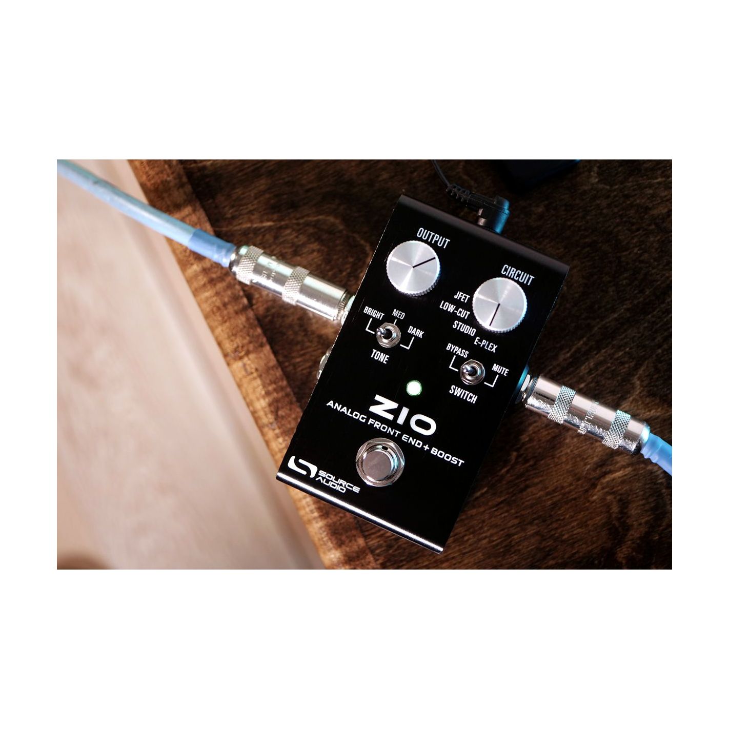Pedal Source Audio SA271 ZIO Analog Front End + Boost - Preamplificador analógico con cuatro modos seleccionables: JFET, LOW-CUT, STUDIO y E-PLEX. Ofrece control de salida con booster de hasta 20 dB y selector de tono de tres posiciones (bright, medium, dark). Dispone de pulsador con función mute, salida adicional para línea o afinador y funcionamiento true bypass. Impedancia de entrada de 1 MΩ y salida de 150 Ω. Alimentación de 9V DC con centro negativo y consumo de 20 mA. Construcción en aluminio.