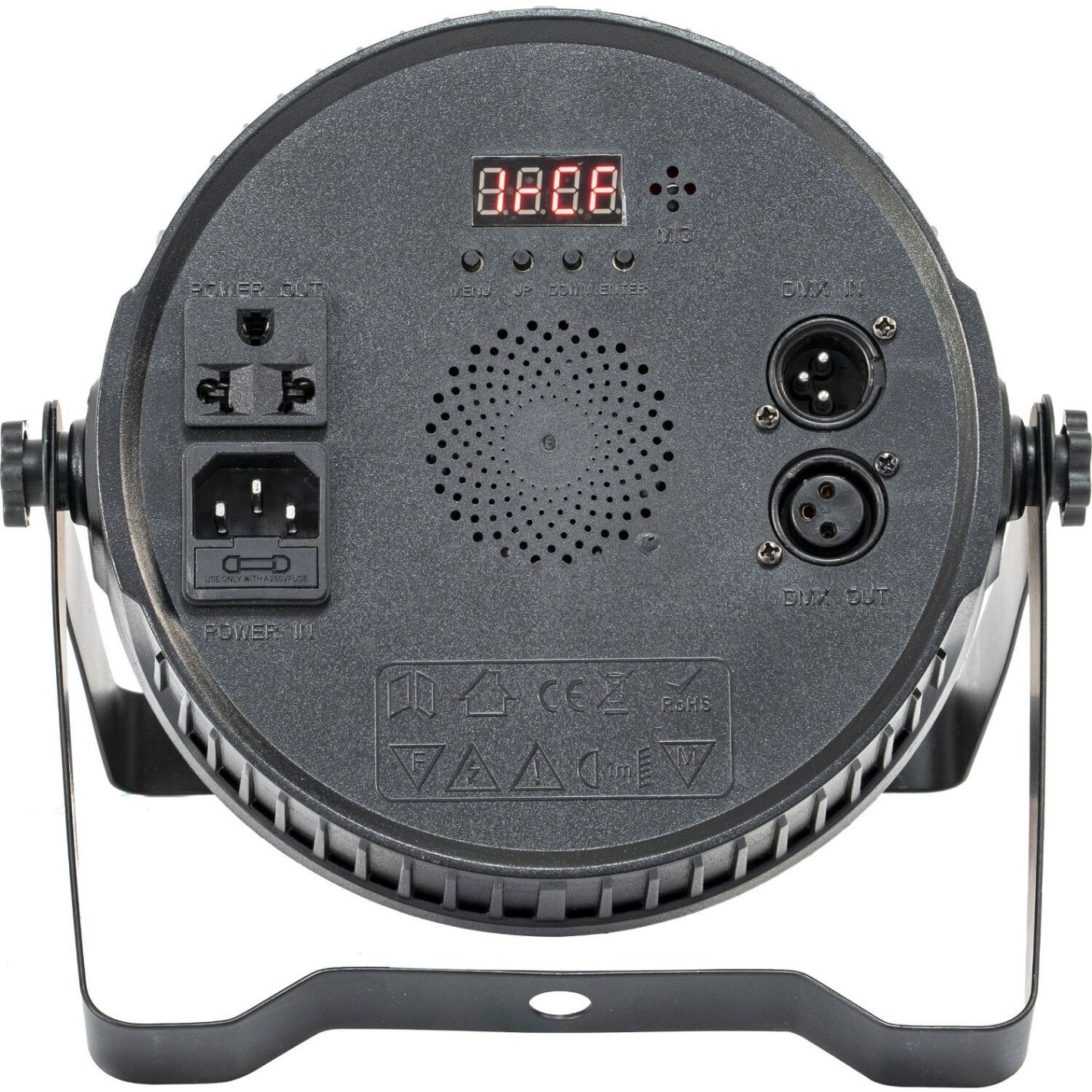 Proyector PAR 14LED RGBW 6W extra-plano, de grandes prestaciones en colores y diversidad. potente, equipado con un doble soporte robusto que le permite ponerlo en el suelo, en la pared o bien en una estructura. De bonitos acabados, gran rendimiento. 4 o 8 canales DMX Funcionamiento automático, maestro-esclavo, DMX, controlado por el sonido o bien por mando a distancia incluido