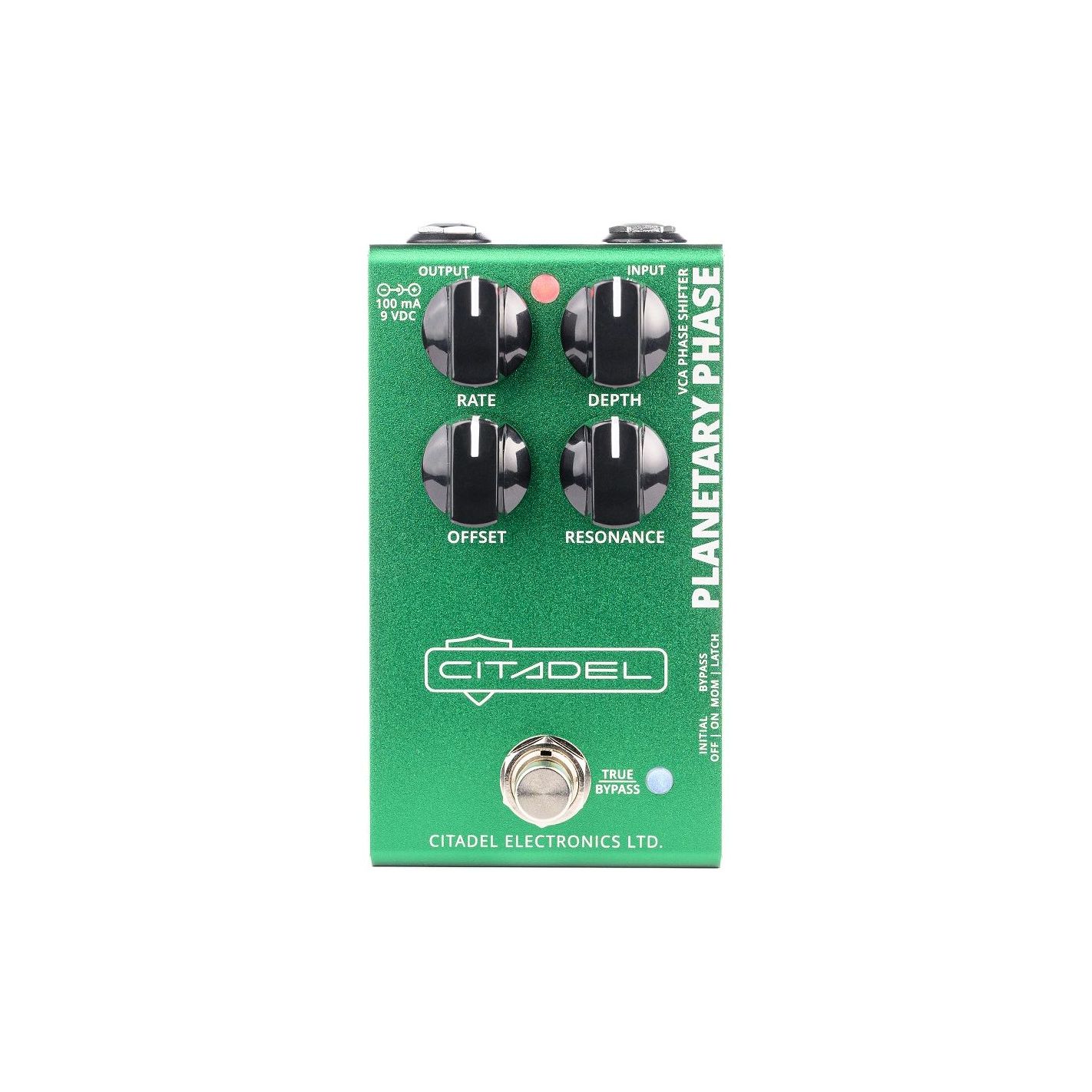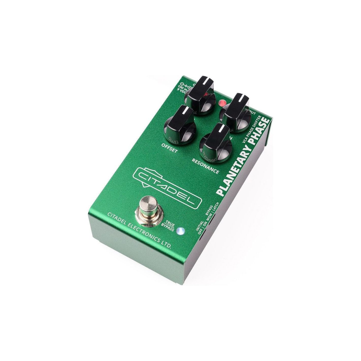 Pedal de efectos Citadel PLANETARY PHASE - Phaser VCA totalmente analógico para guitarra y bajo, diseñado para ofrecer modulaciones suaves y profundas. Incorpora controles de Rate, Depth, Offset y Resonance para un ajuste preciso del barrido de fase. Dispone de True Bypass de relé con Footswitch de accionamiento suave (soft click), selector de estado inicial al encender (activado o desactivado) y opción de funcionamiento del Footswitch en modo Momentary o Latch, proporcionando máxima versatilidad en interpretación y configuración en pedalera.