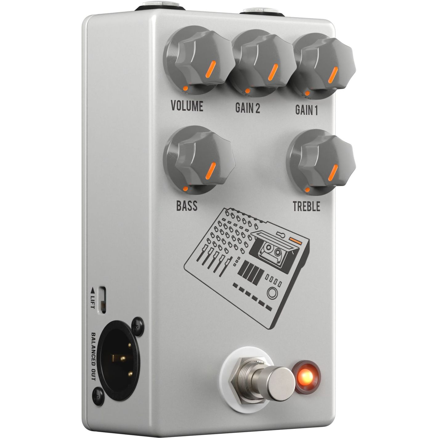 Jhs Pedals 424 Gain Stage - Pedal De Overdrive La etapa de ganancia 424 ofrece todo el tono elástico y lo-fi que se obtiene al conectar un equipo de guitarra directamente a un Tascam® Portastudio® 424. Ahora en formato pedal, puedes integrar fácilmente los tonos limpios y elásticos, el alto headroom y el fuzz que están volviendo a popularizar los guitarristas emergentes de hoy en día. El 424 Gain Stage como DIEl uso de la Di te proporcionará exactamente la misma textura, el fuzz lo-fi que obtienes al conectar directamente a un 424El 424 Gain Stage con un amplificadorConectar un Portastudio® a tu amplificador es toda una hazaña. En este formato de pedal, puedes integrar fácilmente el tono del 424 con la saturación de tu amplificador favorito. Volume (Corresponde al Portastudio® Master) - Controla el volumen de salida. Gain 1 (trim) - Establece la cantidad de preamplificación que se añadirá a la señal de entrada. En el Portastudio 424, este es el control Trim. Gain 2 (channel) - Establece el nivel de volumen de la segunda etapa de ganancia. En el Portastudio 424, este es el fader Channel. Bass - Corta o realza las frecuencias graves. Hacia la izquierda se reduce, hacia la derecha se realza. Treble - Corta o realza las frecuencias agudas. Hacia la izquierda se reduce, hacia la derecha se realza. Input - Conector jack de ¼" en la parte superior derecha. Output - Conector jack de ¼" en la parte superior izquierda. Salida Xlr: conector Xlr en el lado izquierdo del pedal. Se trata de una salida balanceada que se puede utilizar como salida directa a un mezclador o interfaz. La salida de ¼" y la salida Xlr se pueden utilizar simultáneamente. Ground Lift: interruptor Dip en el lado izquierdo del pedal. Si se produce un zumbido al utilizar la salida Xlr, utilice este interruptor para levantar la tierra. Alimentación: Requiere alimentación de 9 V Cc con polo negativo en el centro y consume 50 mA. El 424 Gain Stage es silencioso, con conmutación suave y bypass con búfer.