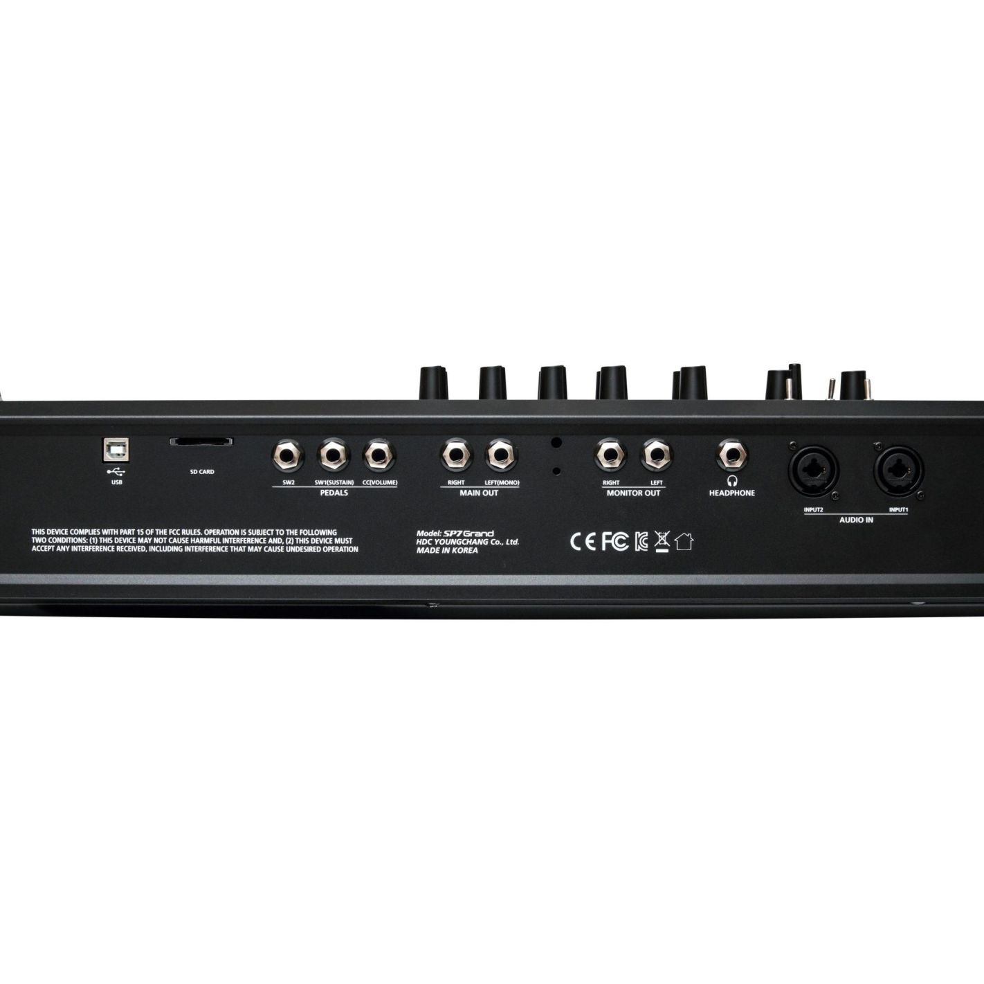 SP7G - PIANO DE ESCENARIO 88 TECLAS KURZWEIL PROFESIONAL - Piano de escenario. 88 teclas completamente contrapesadas de acción de martillo (Fatar TP/110). Síntesis: A.T.S.T. - 'Authentic Timbre Synthesis Technology'. Polifonía de 256 voces. Sonidos de fábrica de 2 GB. 301 programas de fábrica. Amplia sección de efectos con Reverb, Delay, Chorus, Flanger, Phaser, Distorsión, Altavoz giratorio, Compresor y mucho más. Multimodo con 16 partes y modo multicontrolador de 16 zonas. 8 arpegiadores híbridos. Edición vocal: tono, vibrato y legato, además de armonías de 4 voces y posibilidad de efectos de tipo vocoder. Función de transposición. Joystick de tono y modulación. 8 potenciómetros y botones. Pantalla táctil LCD a color de 7". Interface de audio estéreo USB incorporado. 2 entradas de audio (jack combo XLR/TRS) para señales de línea, instrumento y micrófono (alimentación phantom de +48 V conmutable). 4 salidas de audio: jack TRS de 6,3 mm. Salida de auriculares estéreo: jack TRS de 6,3 mm. 4 entradas de pedal: jack de 6,3 mm. Entrada/Salida MIDI. Puerto USB-B para la conexión al ordenador. Ranura para tarjeta SD. Dimensiones (ancho x profundo x alto): 1320 x 370 x 120 mm. Peso: 16,3 kg. Incluye fuente de alimentación de 15 V y 2,5 A, cable USB y cable TRS de 6,3 mm. - El piano SP7 Grand está diseñado sobre nuestra nueva plataforma de síntesis A.T.S.T. y marca una nueva era en la tecnología Kurzweil. Creada a partir de nuestro semiconductor personalizado, A.T.S.T. ofrece audio de alta fidelidad, programación de sonido optimizada y transiciones de capas de velocidad casi perfectas. El piano SP7 Grand ofrece 512 presets múltiples organizados en 13 categorías y cuenta con nuestro Concert Grand alemán "D" de 9 pies derivado del K2700. Alimentado por las muestras de piano de cola alemán de 9" que se encuentran en nuestra estación de trabajo insignia K2700, el motor SP7 Grand A.T.S.T. proporciona avances significativos en el realismo a través del soporte de audio de mayor resolución, transiciones de velocidad suaves y un filtro de sobremuestreo 2x. Los pianos SP7 Grand se mejoran aún más con el uso de modelado de resonancia de cuerdas y pedales, muestras de teclas apagadas controladas por envolvente/velocidad y pedal de medio apagador*, que ofrecen una experiencia de interpretación de piano mejorada (*el pedal de medio apagador se vende por separado). Hay 21 algoritmos de efectos disponibles para mejorar el rico sonido del SP7 Grand, incluyendo reverb, retardo sincronizado con BPM, chorus, flange, compresión, varios tipos de distorsión, altavoz giratorio, trémolo, wah-wah y eq.