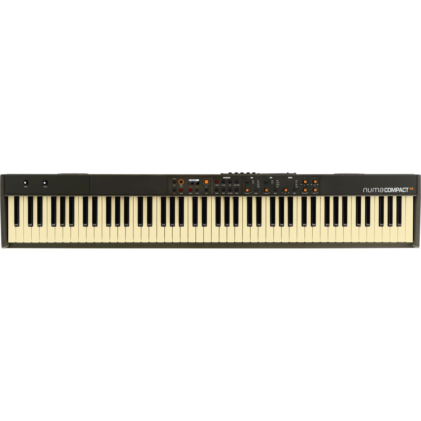B-Stock (Reacondicionado) - Teclado Compacto con Altavoces Integrados Studiologic Numa Compact SE - Teclado semicontrapesado de 88 notas con aftertouch - 2 joysticks de control programables - Amplificador integrado de 2x10W + altavoces elípticos traseros - Pantalla OLED de 128x64 - Interfaz de usuario que ofrece control directo - 200 canales de polifonía - 148 sonidos de pianos, teclados, sintetizadores y órganos, multi-muestreo TrS (True Sound) – 2 procesadores de efectos por sección (superior/inferior), reverb estéreo, ajuste de ecualizador maestro (graves, agudos) y procesador de