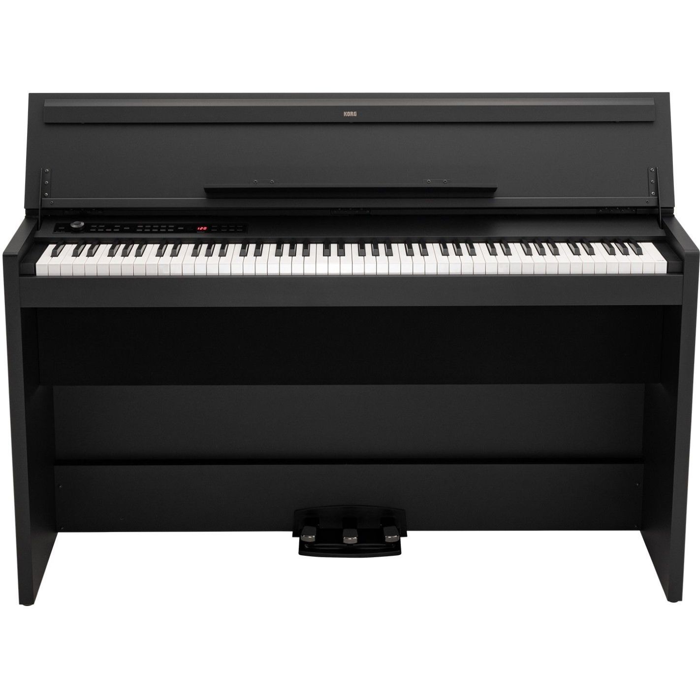 Korg E1 Air Black - Piano Digital Korg E1 Air es un piano digital de diseño elegante y sonido envolvente, fabricado en Japón con la máxima atención al detalle. Su acabado en negro mate y perfil compacto solo 35 cm de fondo lo hacen ideal para cualquier espacio, desde salones modernos hasta estudios o dormitorios. Equipado con el teclado contrapesado Rh3, simula con gran realismo la sensación de un piano de cola, permitiendo una interpretación dinámica y expresiva. Gracias a su sistema de sonido optimizado con altavoces frontales, alimentación EvoTone para mayor claridad y conectividad