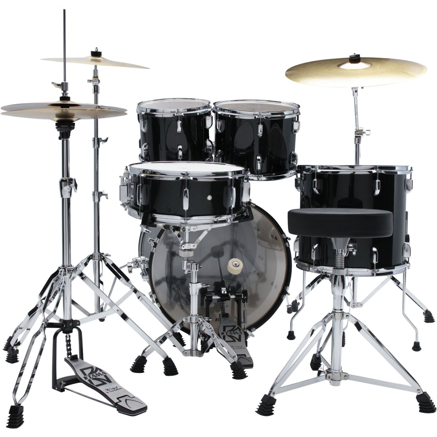 - Hardware completo: soporte de hi-hat, soporte de caja, soporte recto y boom para platillos