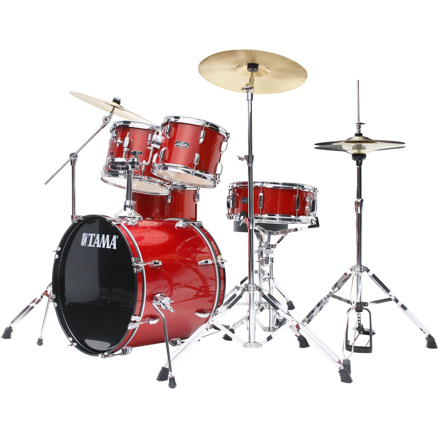 Batería acústica Tama Stagestar ST50H6-CDS Candy Red Sparkle - Kit de 5 piezas compuesto por bombo de 20"x16", toms de 10"x8" y 12"x9", tom de piso de 14"x13" y caja de 14"x5.5". Casco de álamo de 7 mm y 6 capas. Incluye sistema Omnisphere Tom Holder, pedal de bombo con transmisión de doble cadena, leva y ajuste de ángulo del batidor. Trono doble reforzado con varilla roscada. Hardware completo: soporte de hi-hat, pedal de bombo, soporte de caja, soporte recto y boom para platillos. Platillos Meinl BCS incluidos (hi-hat 14", crash 16", ride 20").