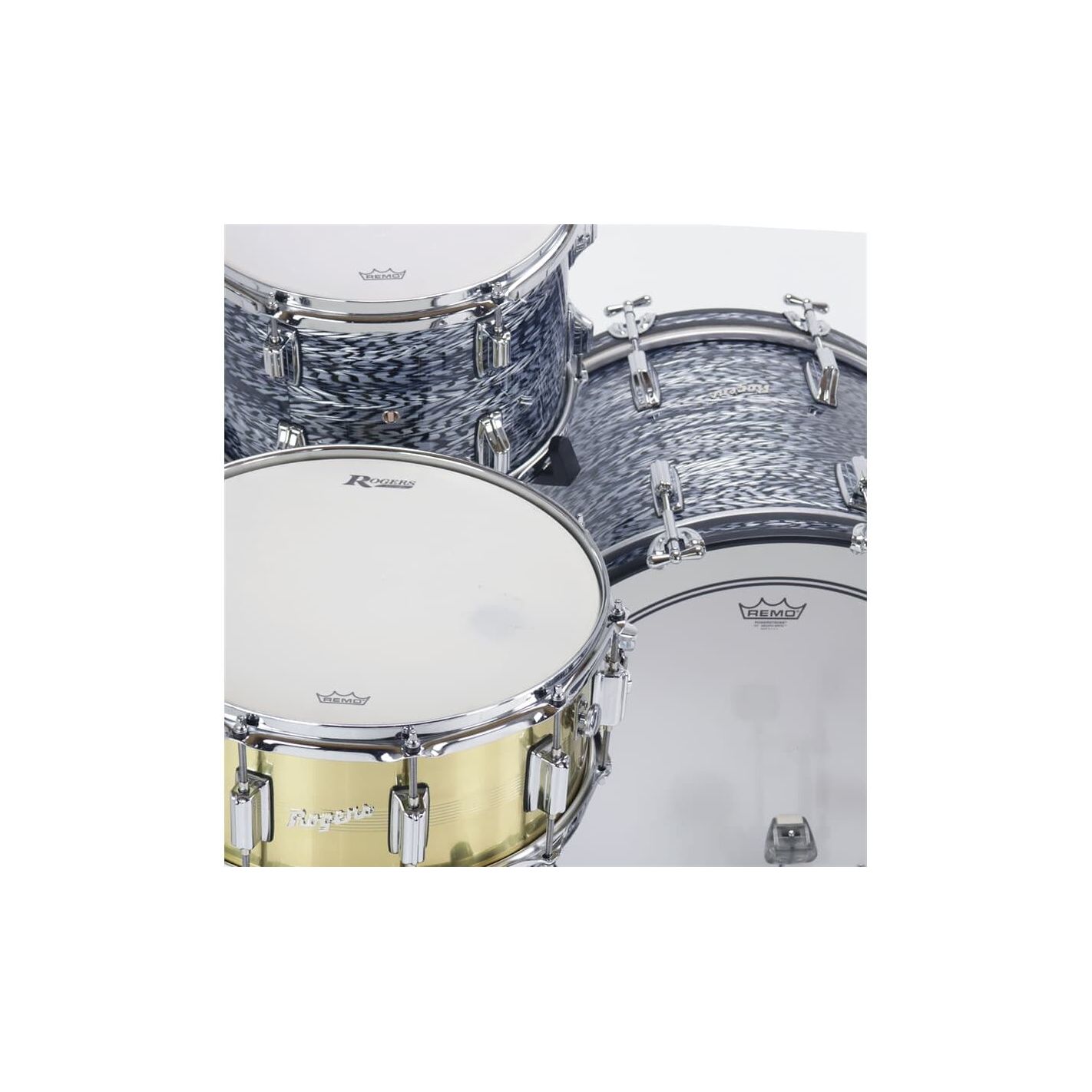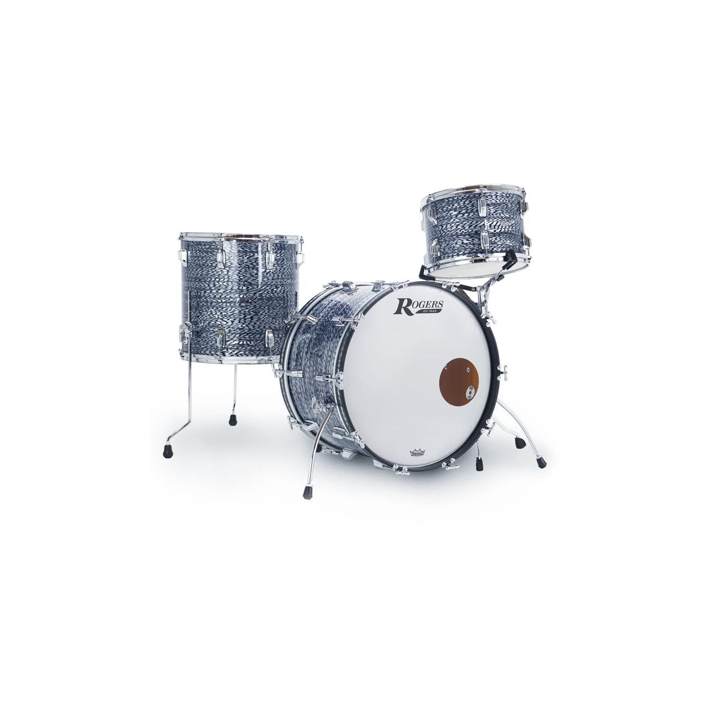 Rogers CLE-0322HX-SBO - shell kit Cleveland - acabado Sky Blue Onyx - Bombo 22x14, tom 13x9, base 16x16 - cascos patentados de arce norteamericano y álamo de 5 capas con aros de refuerzo de 2 capas de arce - acabado cubierto - aros Triple Flanged de 2,3mm - herrajes cromados - tensores Beavertail - tornillos de tensión del bombo Bow-Tie - Badge Rogers "script logo"