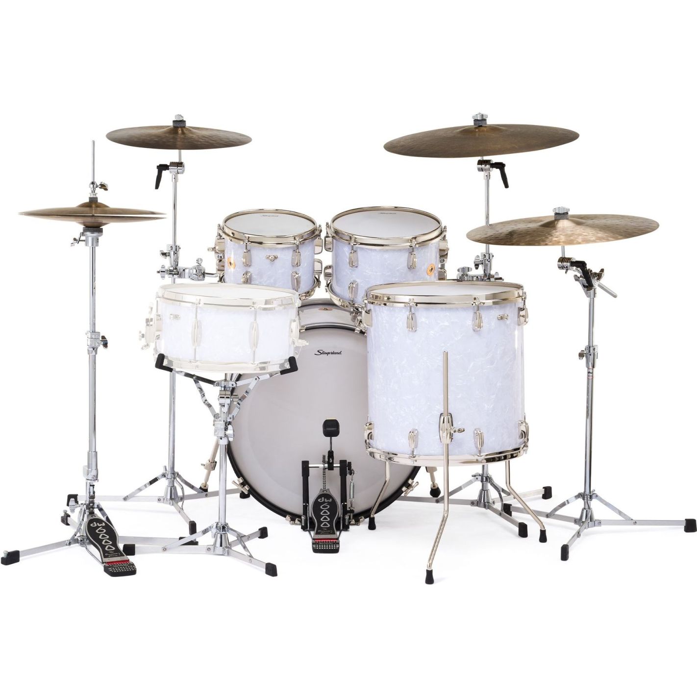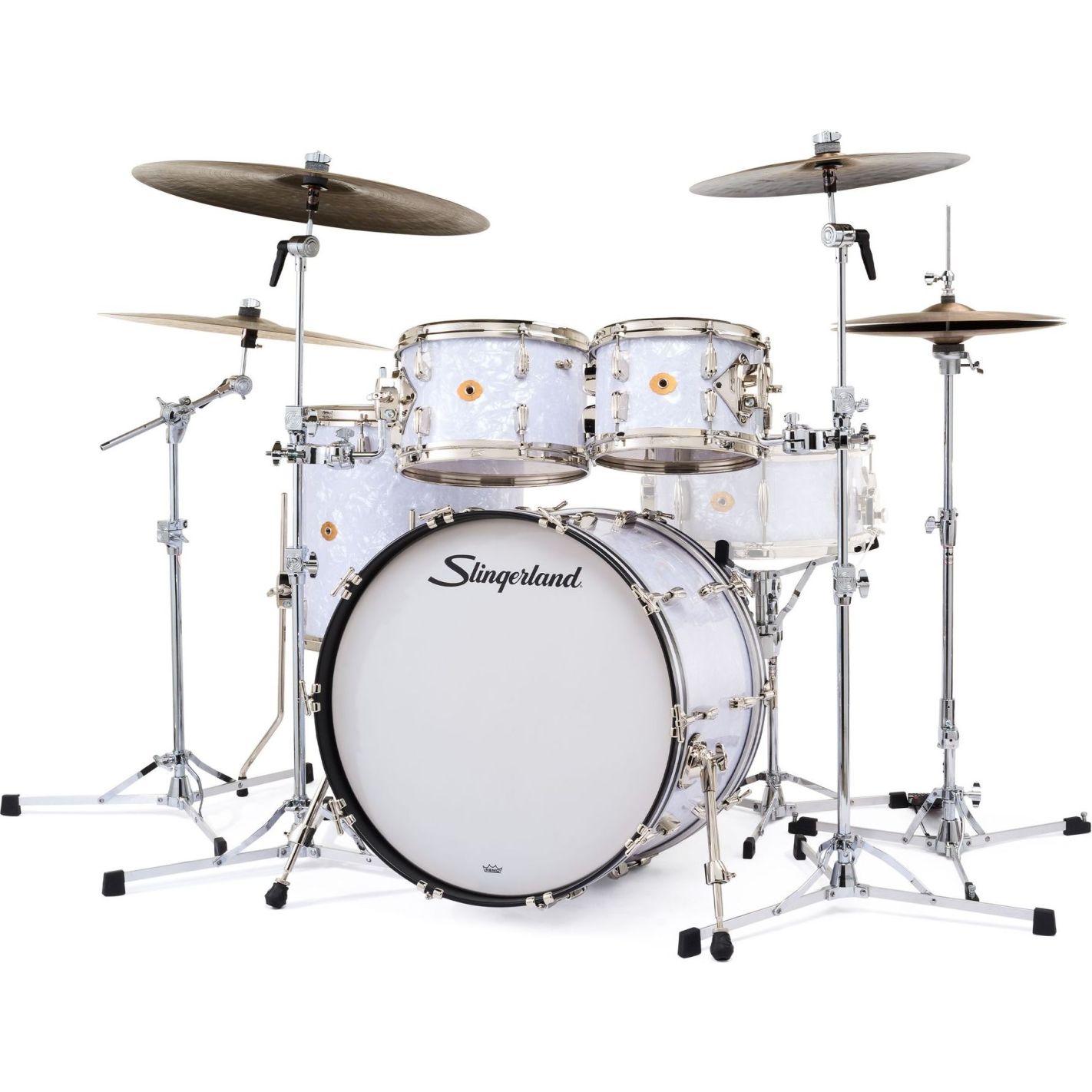 Slingerland 4-Piece Radio King Kit, 10", 12" & 16" Toms, 22" Bass Drum, FinishPly, White Marine Pearl, Nickel Hardware