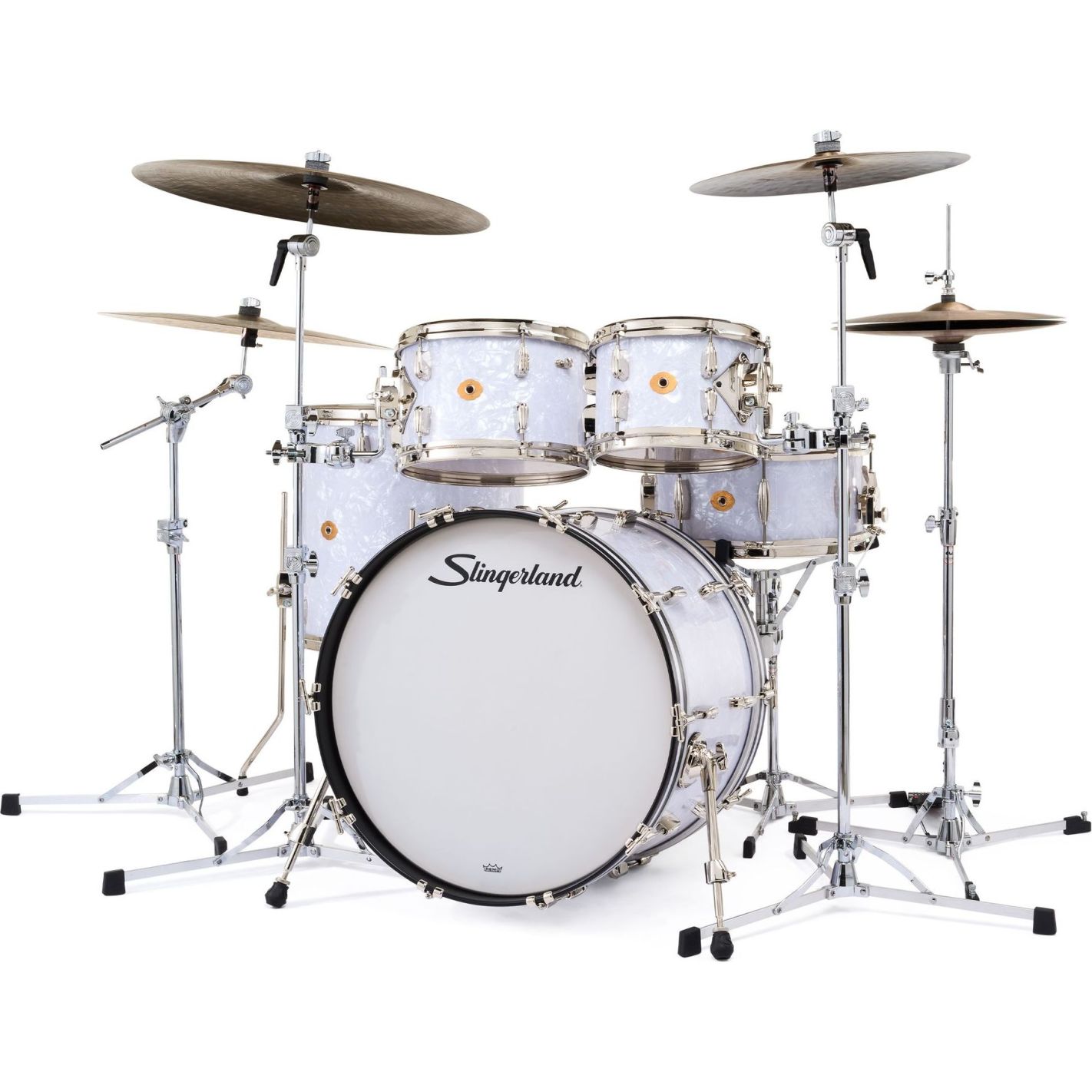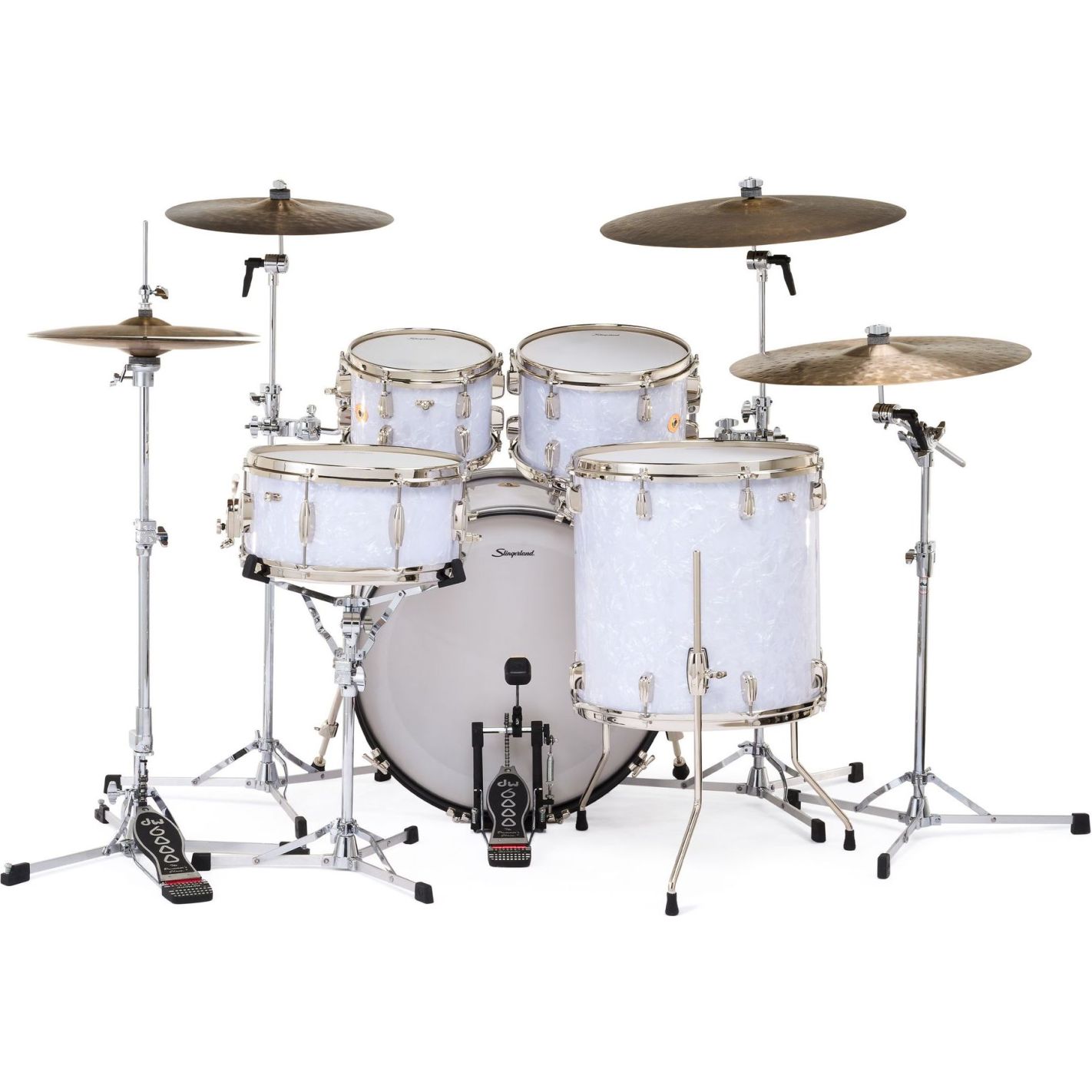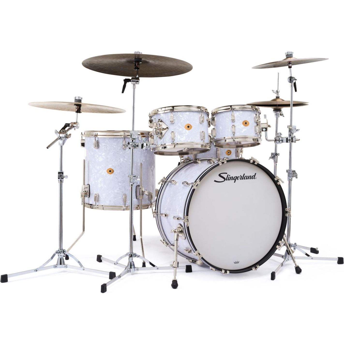 Slingerland 5-Piece Radio King Kit, 10", 12" & 16" Toms, 22" Bass Drum, 6.5" Snare, FinishPly, White Marine Pearl, Nickel Hardware