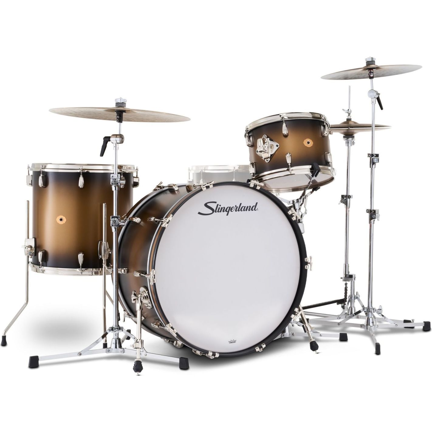 Slingerland 3-Piece Radio King Kit, 13" & 16" Toms, 24" Bass Drum, Lacquer Speciality, Black and Gold Lacquer, Nickel Hardware
