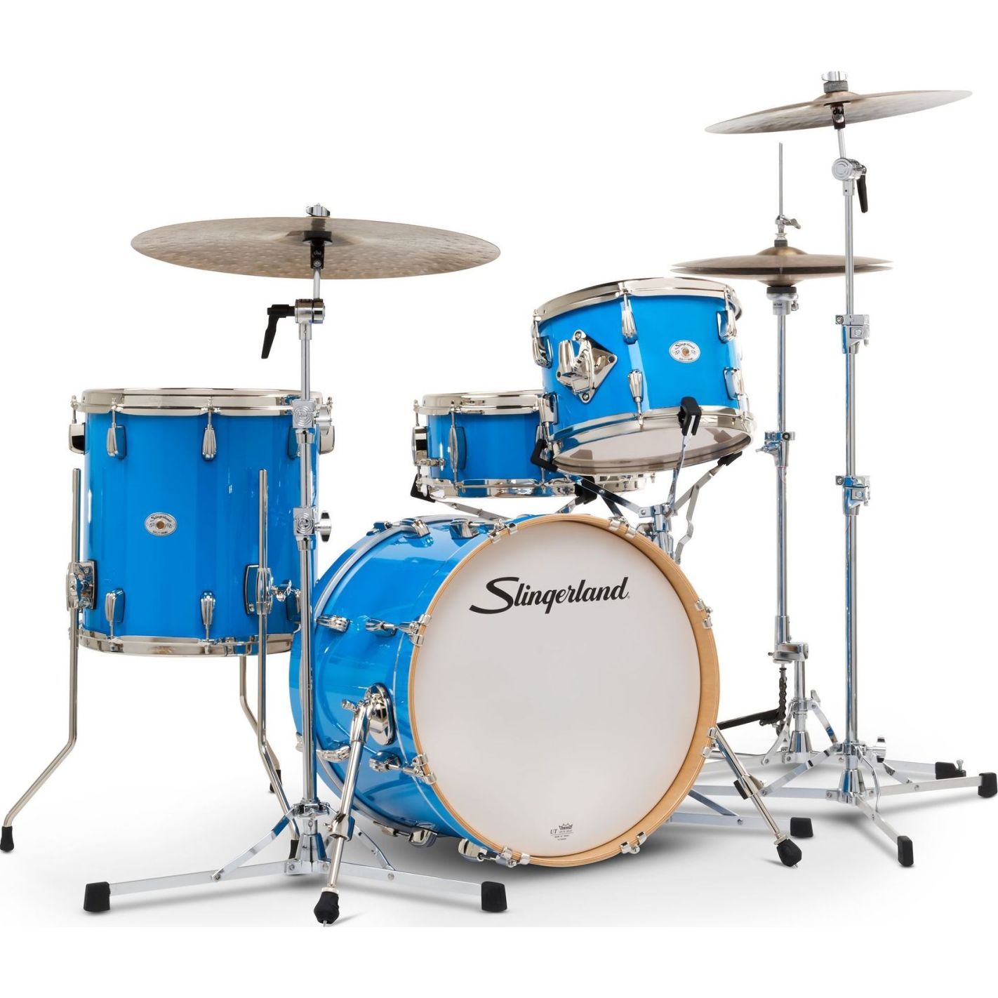 Slingerland 4-Piece Studio King Kit, 12" & 14" Toms, 18" Bass Drum, 5.5" Snare, Lacquer Custom, Lunar Blue, Nickel Hardware
