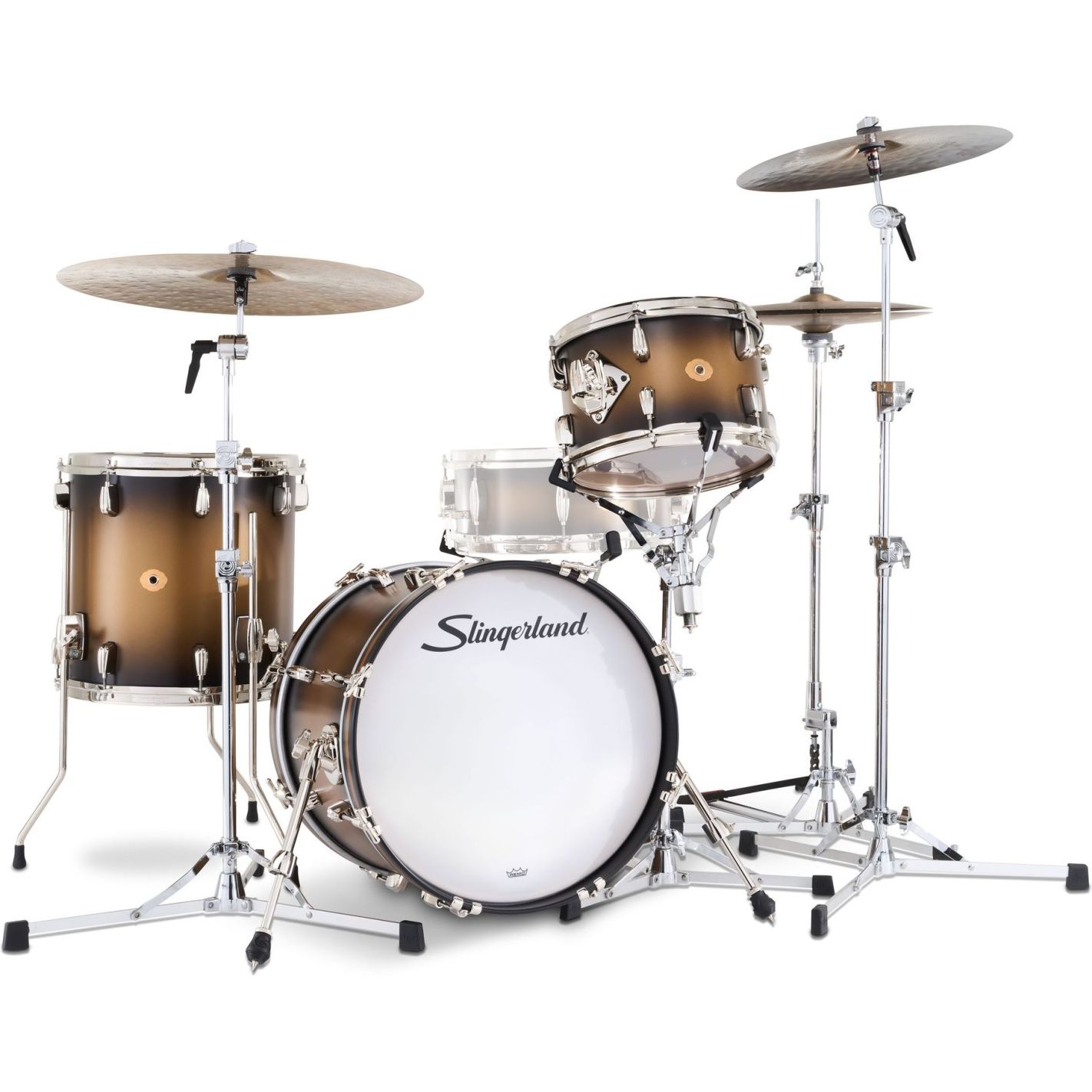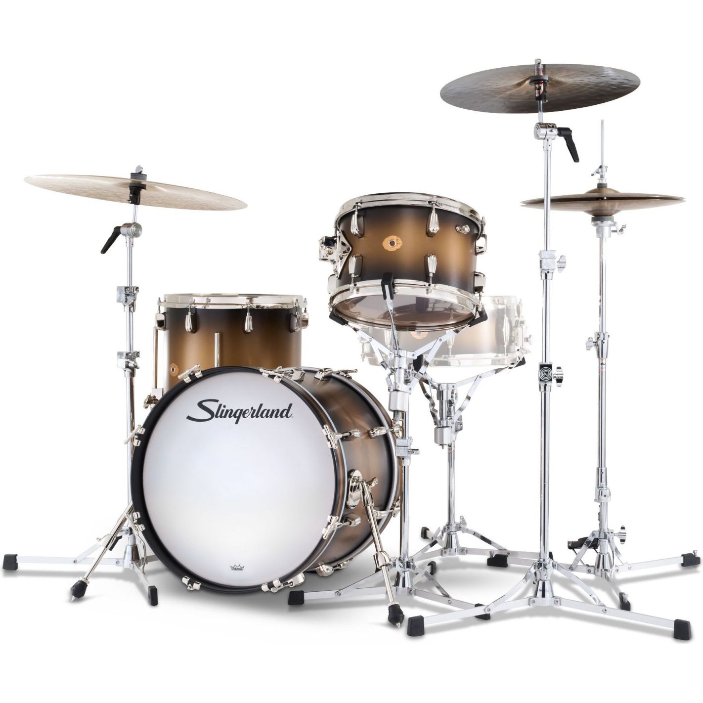 Slingerland 3-Piece Radio King Kit, 12" & 14" Toms, 18" Bass Drum, Lacquer Speciality, Black and Gold Lacquer, Nickel Hardware