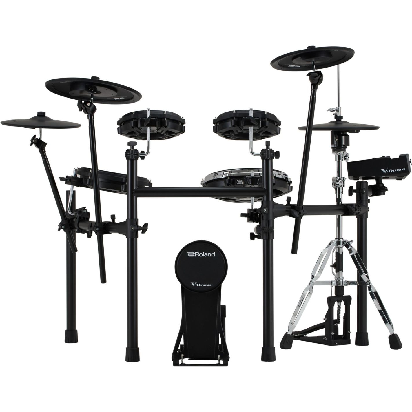 Incluye una caja PD-12P con triple sensor, detección posicional, respuesta a escobillas y articulaciones de aro/centro, garantizando un control preciso y expresivo. Los toms PD-8H y PD-10H con sensores desplazados aportan dinámica natural, mientras que el bombo KD-10 ofrece un tacto acústico realista con baja resonancia. El charles VH-10 proporciona control real de apertura y cierre, acompañado de dos crash CY-12C-T de doble zona y un ride CY-14R-T de tres zonas con función de silencio.