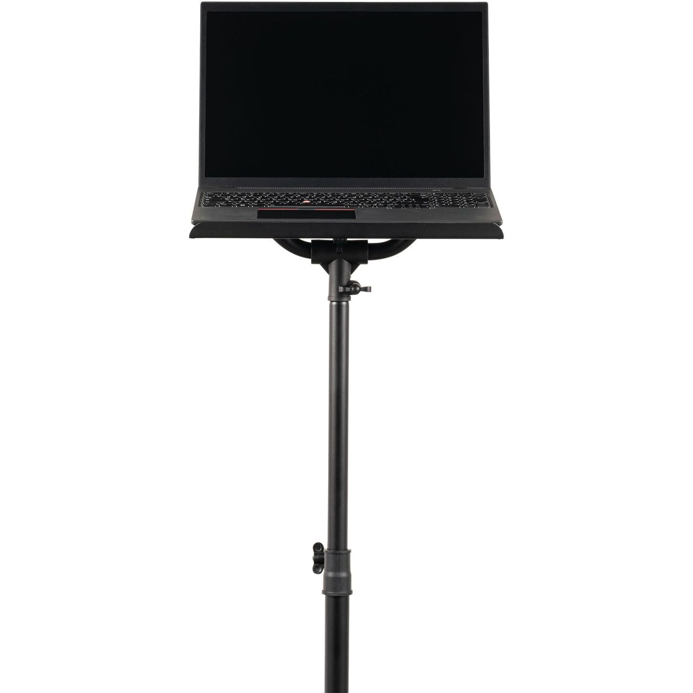 Soporte para laptop Meinl MLLTS Laptop Table Stand, ligero y portátil. Este soporte de mesa ligero para portátil, ideal para viajes, admite portátiles de hasta 16 pulgadas. Fabricado en aluminio, cuenta con patas plegables para un fácil transporte y almacenamiento. Su diseño incluye una superficie antideslizante y altura regulable para una mayor comodidad. Las dimensiones son 14,5 x 10 3/4 pulgadas. El soporte Meinl MLLTS ofrece una solución estable y adaptable para usar tu laptop o controladora, perfecto para músicos o cualquier usuario que necesite un soporte portátil y regulable en altura.