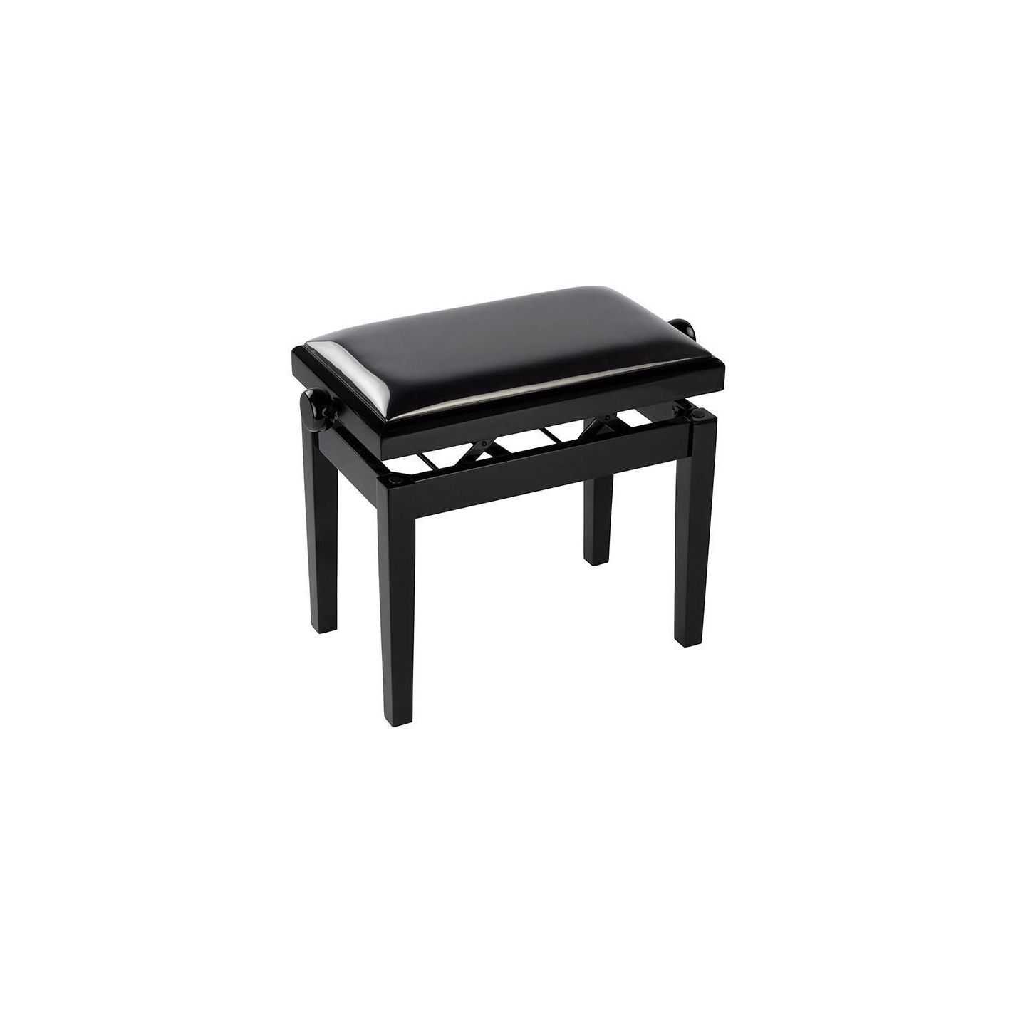 PB2/2525 Banco piano Deluxe. Asiento ajustable. Construcción de doble cruz. Negro satinado con asiento de vinilo negro.