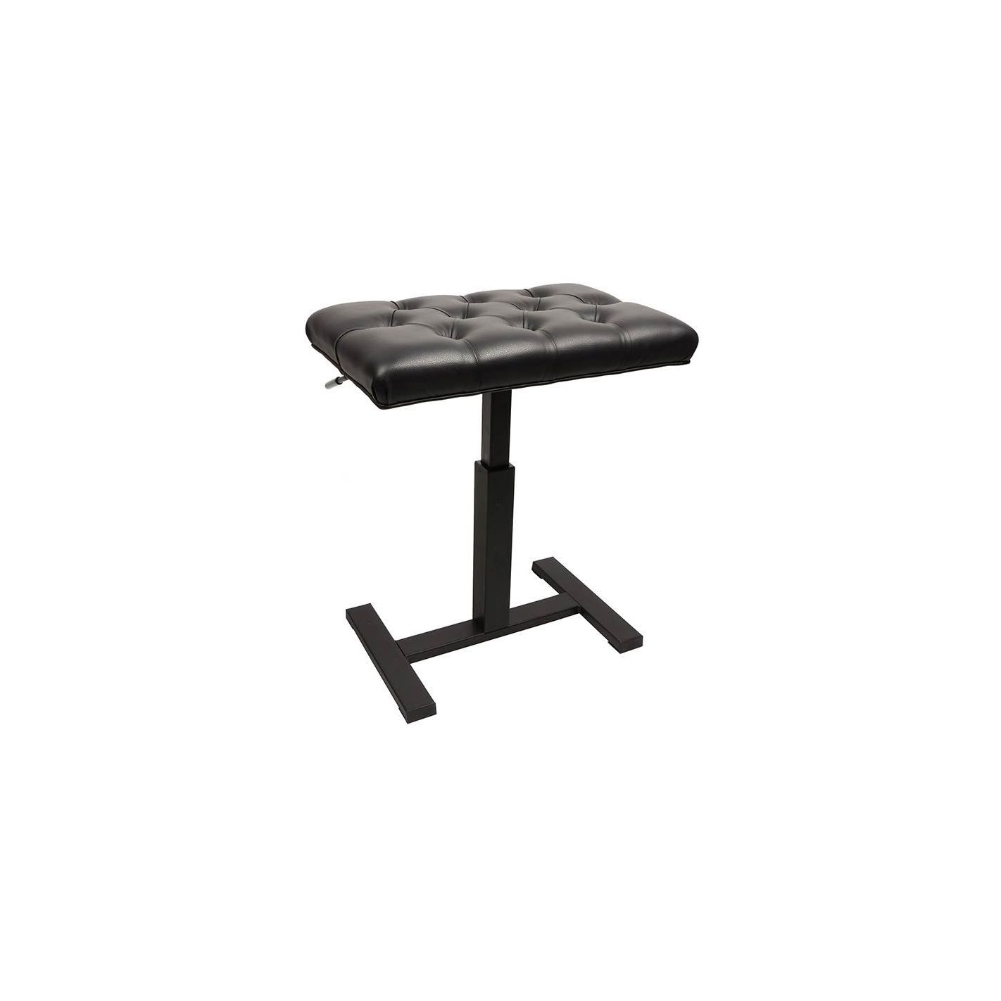 PBH/225 Asiento regulable hidráulicamente (48x31x49-56cm) negro satinado y vinilo acolchado negro mar Este moderno banco para piano ofrece un asiento muy cómodo y es extremadamente funcional. En parte porque se ajusta fácilmente en altura mediante un sistema hidráulico. Ideal cuando varios miembros de la familia tocan el piano y hay que ajustar el banco a diferentes alturas se acabaron las molestias de girar los mandos laterales. ¡Este banco se ajusta con una sola manivela! La robusta base de metal está tratada con un revestimiento de polvo negro mate y tiene un asiento acolchado de skai negro muy cómodo.Asiento 48cm x 31cm. Altura 49-56cm.