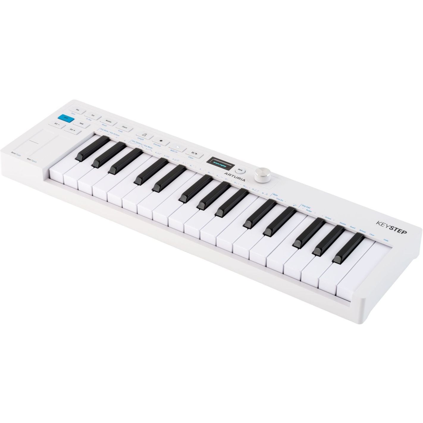 Controlador Arturia KeyStep mk2 - Controlador y secuenciador compacto con teclado Slimkey de 32 notas, pantalla OLED y codificador pulsable. Secuenciador por pasos polifónico, arpegiador con 16 modos y funciones de interpretación Mutate, Spice y Dice. Modos Chord y Scale. Bandas táctiles para Pitch y Mod. Conectividad con salidas CV/Gate asignables, MIDI DIN In/Out de tamaño completo, E/S de sincronización y USB-C para MIDI y alimentación. Diseñado para flujos de trabajo híbridos con hardware, software, equipos modulares y actuaciones portátiles.
