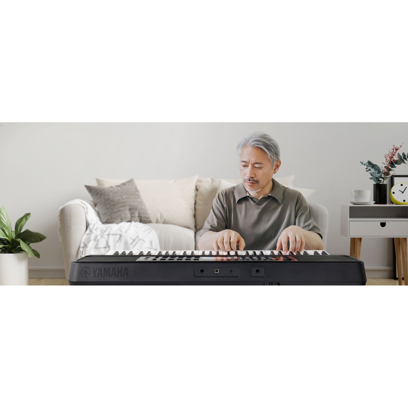 B-Stock (Reacondicionado pequeña marca en tecla) - Teclado portátil serie E Yamaha PSR-E383 - 61 teclas con sensibilidad a la pulsación. Polifonía de 48 notas. 650 voces de alta calidad, 260 estilos de auto acompañamiento. 125 canciones incorporadas, Libro de Partituras fáciles descargable en web. 12 voces Super Articulation Lite. Reverberación, coro y 41 tipos de efectos DSP. 26 tipos de Armonía. 152 tipos de arpecios. Nueva función "Auto Chord Play" para los estilos. "Key to Success" con varias funciones de aprendizaje. Modo dúo. Grabación / Interfaz USB Audio / Midi.